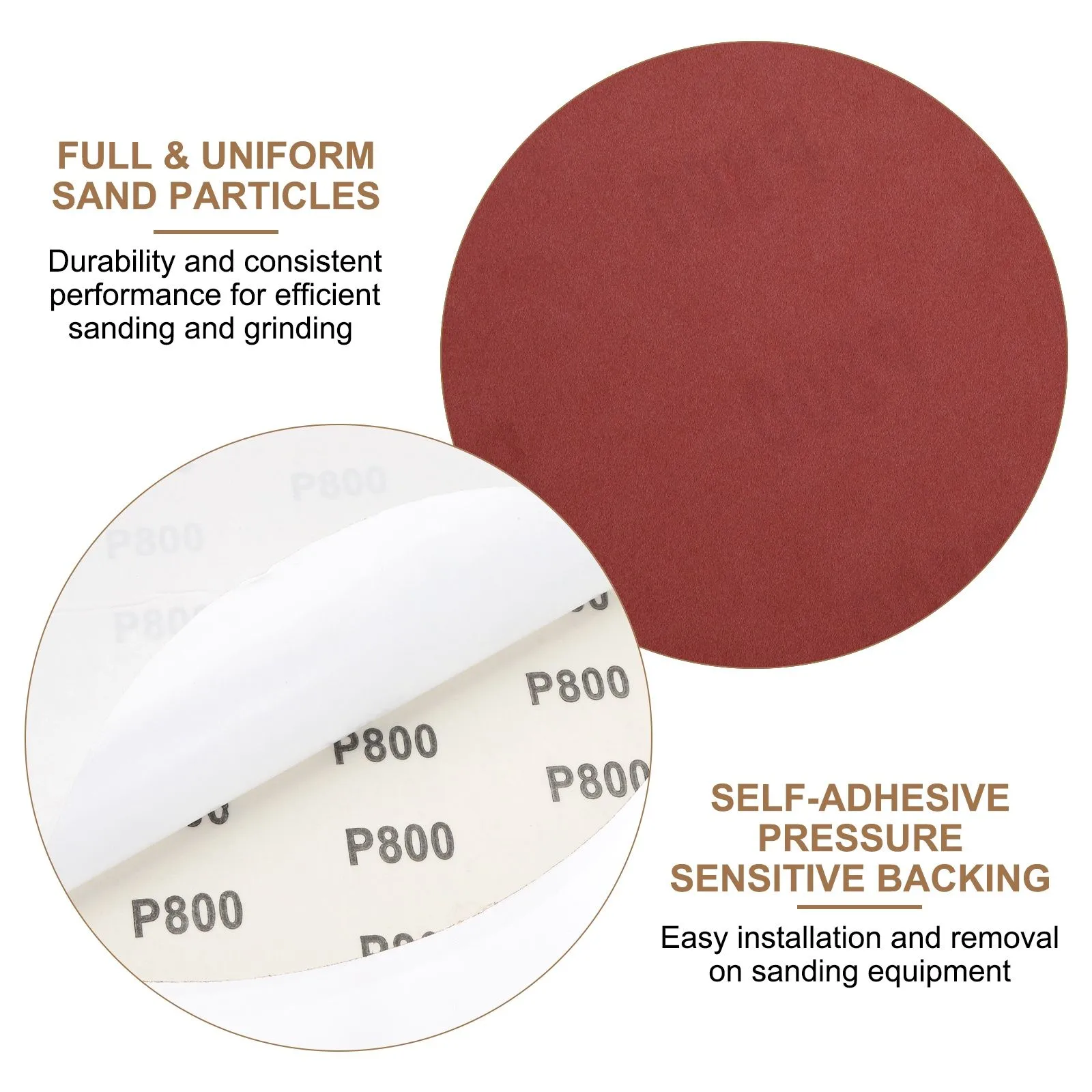自己粘着PSAバック: 圧敏性粘着剤(PSA)バックは、研磨機器に簡単に取り付けられ、取り外しが容易で、アプリケーションプロセス中の時間と労力を節約します。サンドペーパーは、操作中に剥がれることなく確実な接着を提供します。残留物のない機能により、表面を汚さずに簡単にクリーニングし、表面をきれいにします。