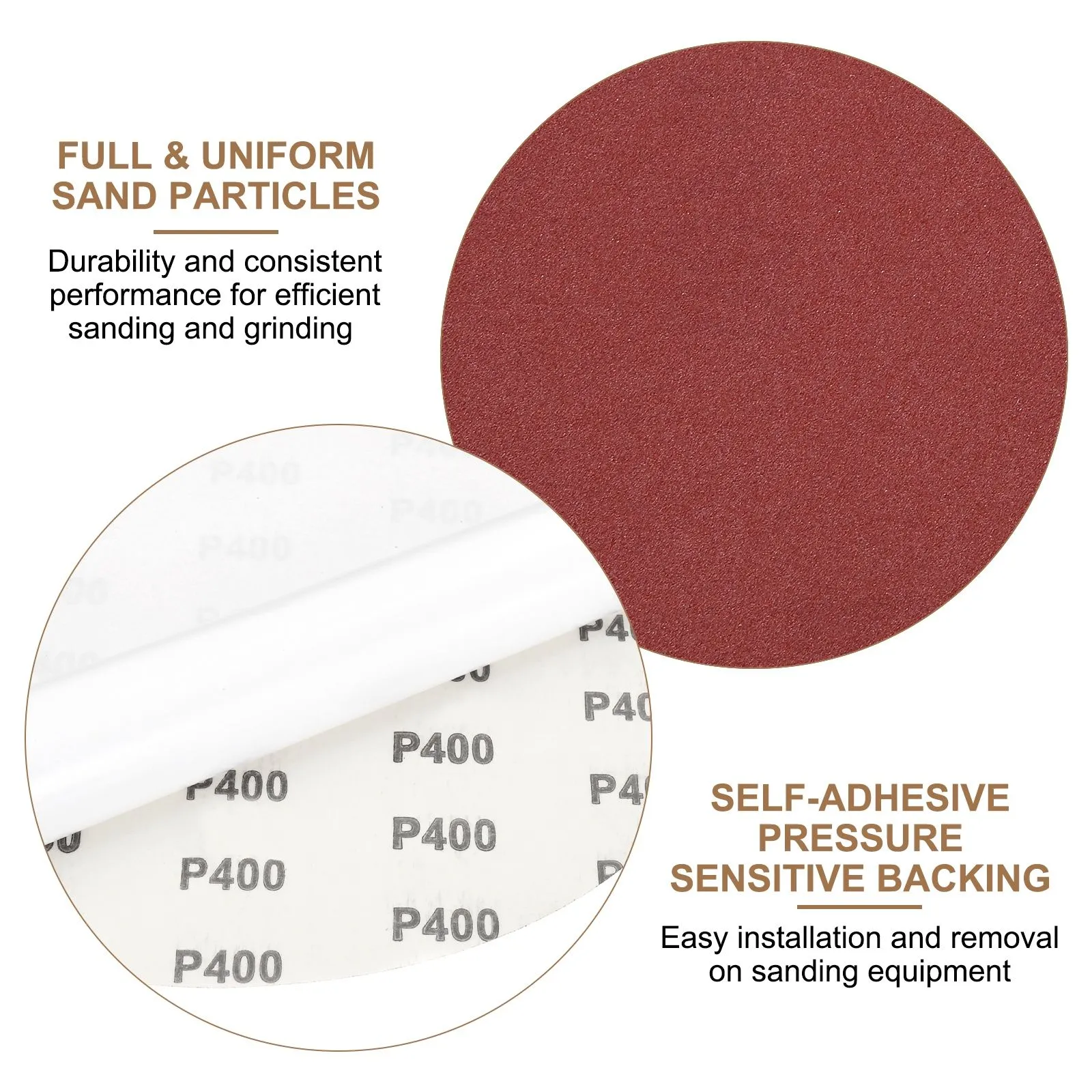 uxcell 12個 10インチ PSAサンディングディスク、400グリット アルミニウムオキサイド 自己粘着 スティックバック サンドペーパー、ノーホール ラウンド ウェット/ドライ サンダーペーパー、自動車の塗装、木材、金属