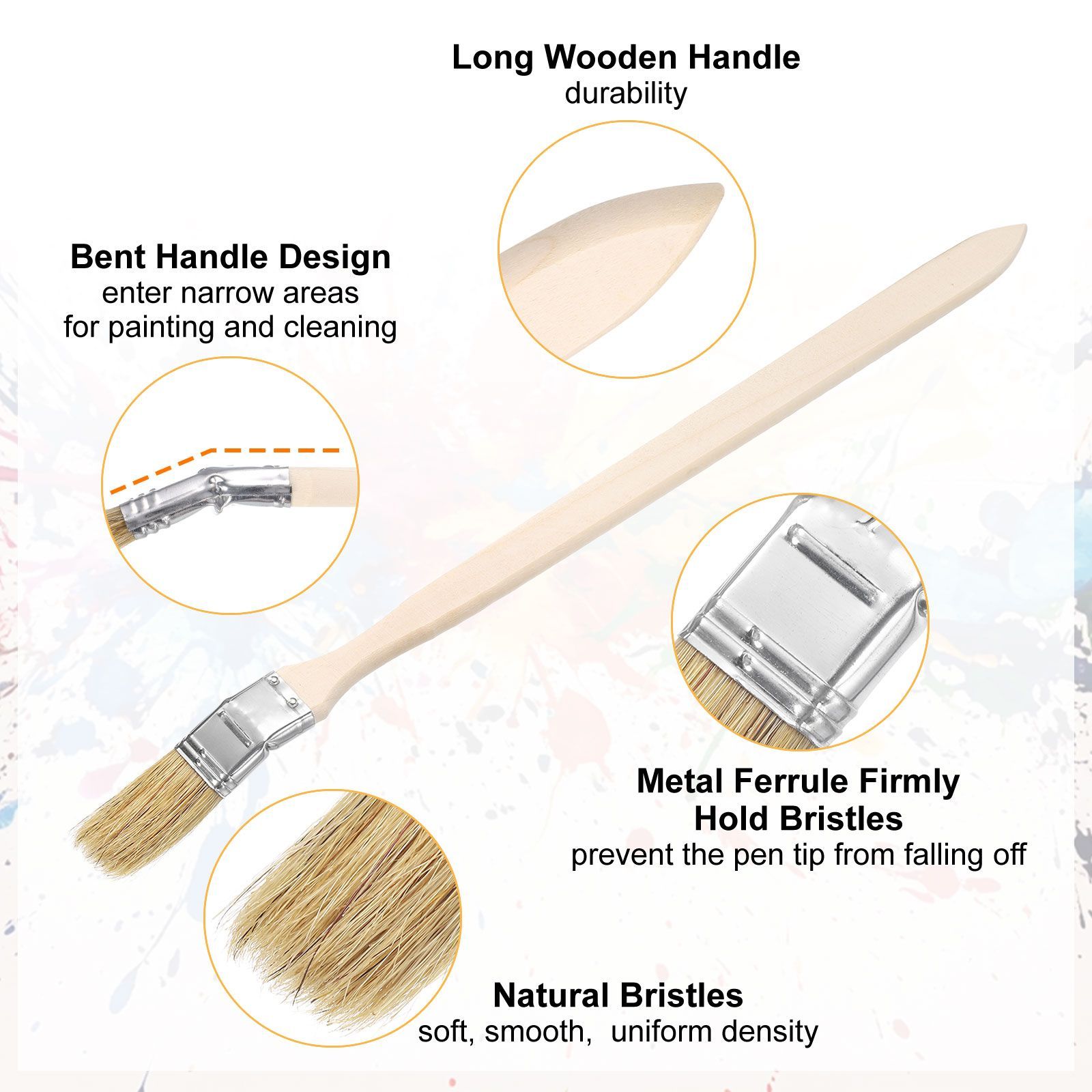 長いハンドルの曲がったペイント毛具は狭い場所の塗装や掃除に適しています。頑丈なアルミニウム合金接続部は毛具頭の脱落を効果的に防止。木製ハンドルはささくれがなく、塗装作業中の操作性に優れています。