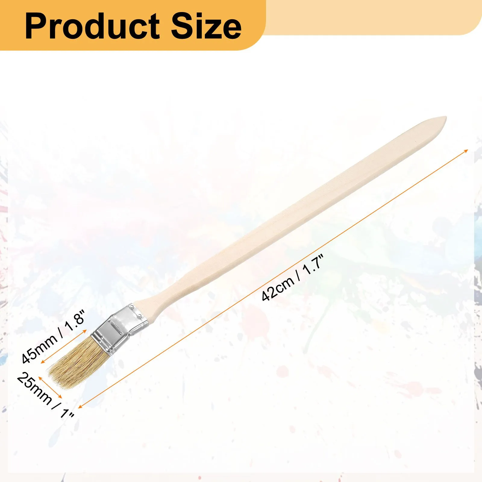 サイズ - 曲がったペイント毛具の全長約42cm/毛具幅25mm/毛先の長さ45mm
