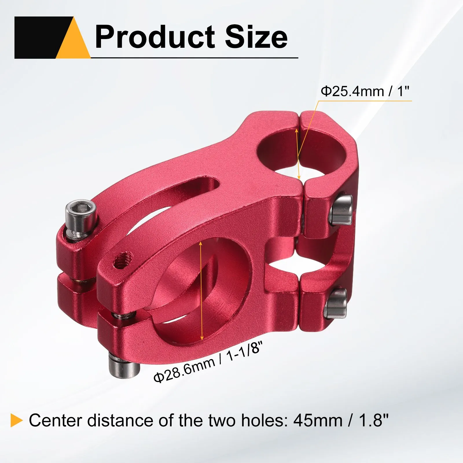 サイズ - ハンドル直径:25.4mm / 1インチ;フロントフォークステム直径:28.6mm / 1-1/8インチ;長さ:45mm / 1.8インチ(両穴の中心距離);パッケージ内容:1個 x バイクステム。