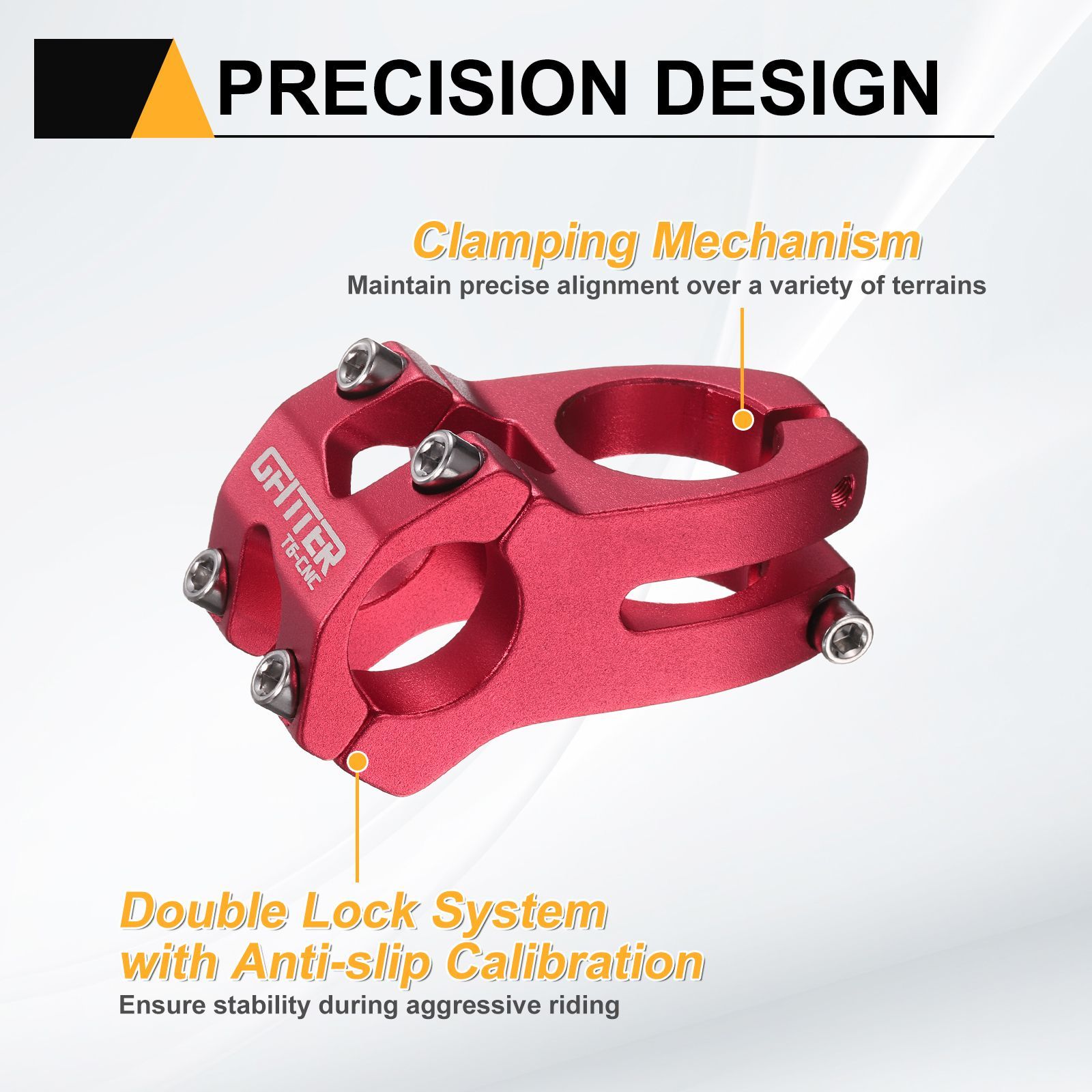 滑り止め調整機能付きダブルロック安全システムにより、激しいライディング中でも安定性を確保します。強化されたクランプ機構が、あらゆる地形で正確なアライメントを維持します。