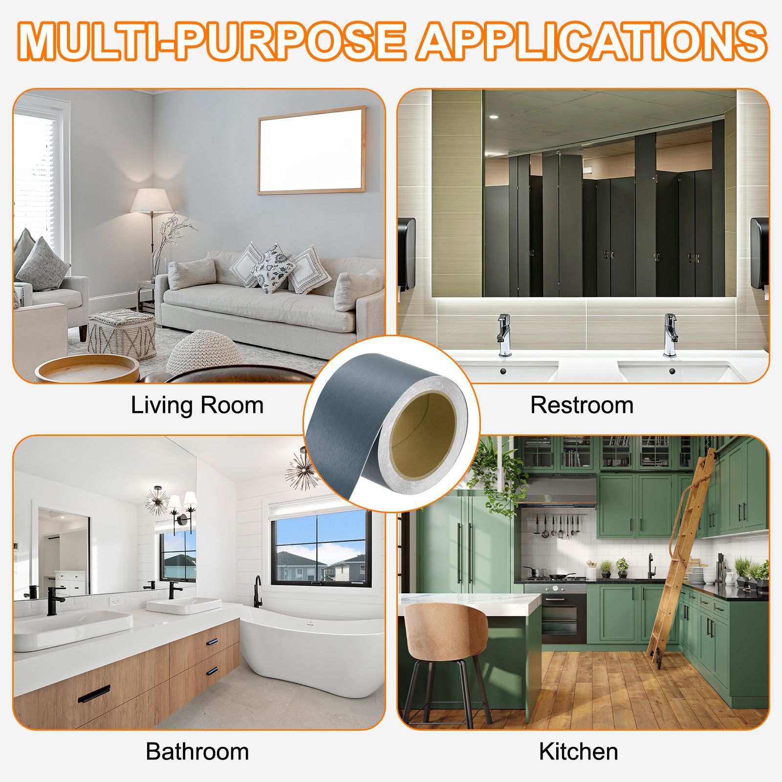 自己粘着防水ボーダーストリップは用途が広く、キックボード・壁・角・キャビネット・ミラー枠・パ ティオ・写真枠などの装飾やDIYパッチワークに最適です。リビング・キッチン・バスルーム・事務所・ガレージ外装・遊園地などに適しています。