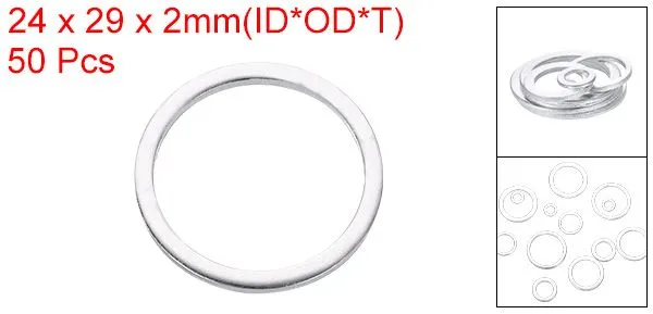 サイズ&パッケージ: ハードウェア座金のサイズは内径24mm x 外径29mm x 厚さ2mm (0.94インチx1.14インチx0.08インチ)で、アルミニウム平座金50個がパッケージに含まれます
