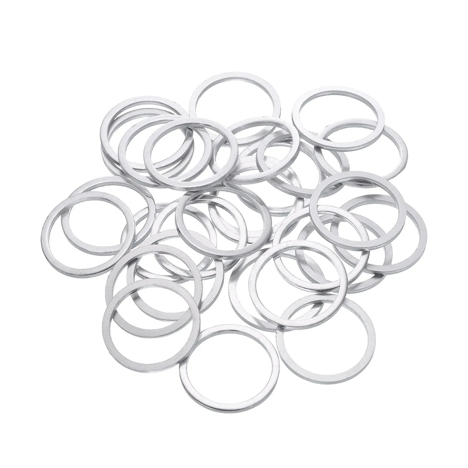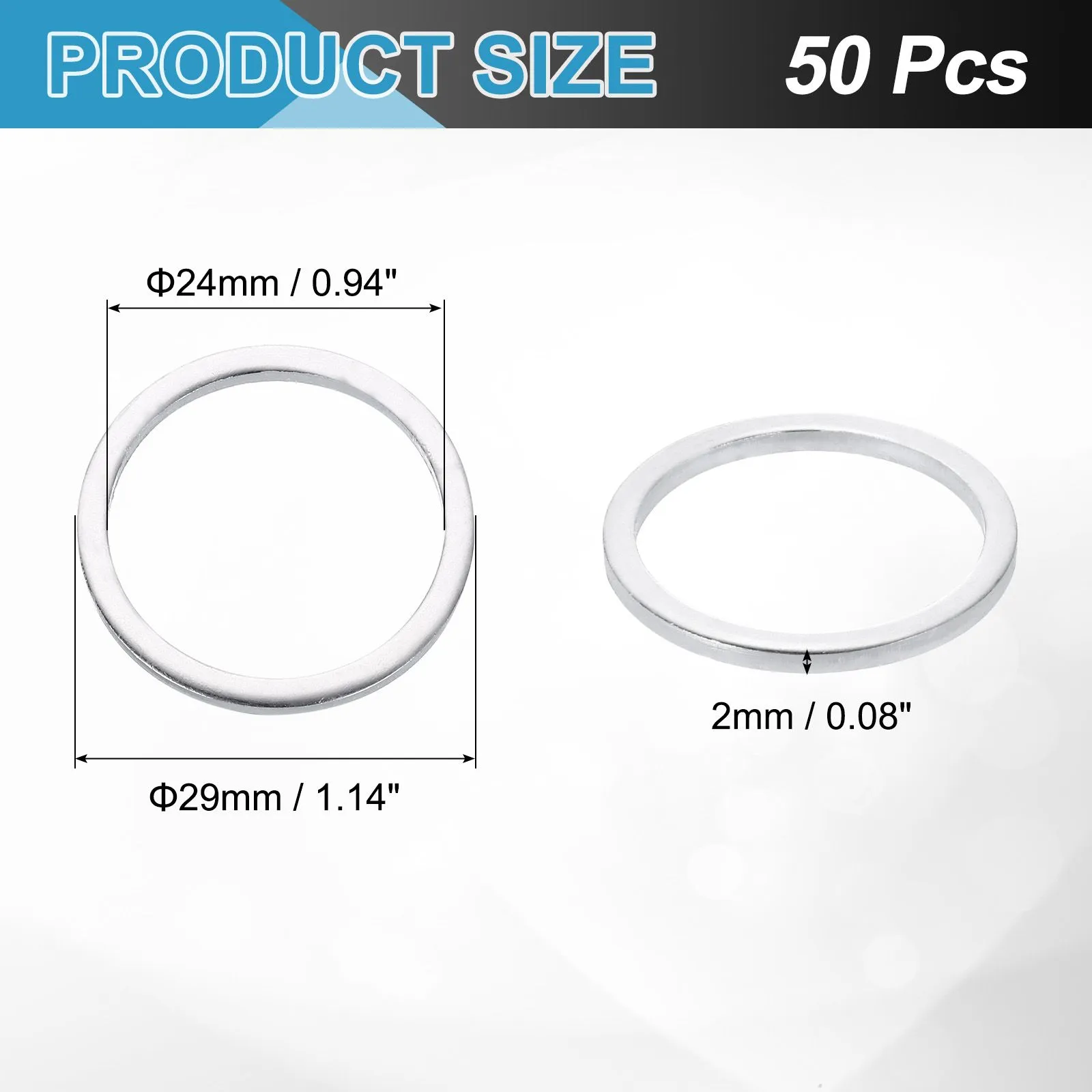 uxcell アルミニウム平座金50個セット、24x29x2mm 丸形シールガスケット 平スペーサー、ネジボルト用機械修理アクセサリー、屋外建設用、シルバートーン