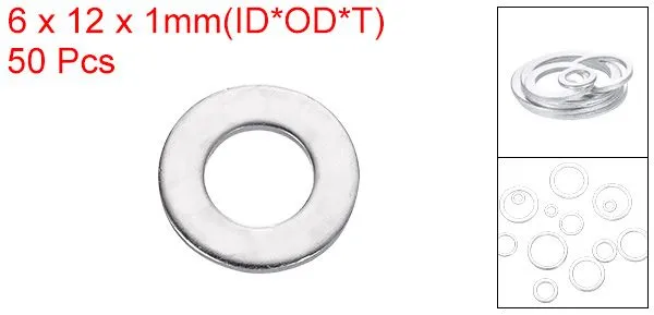 サイズ & パッケージ: ワッシャー の サイズ は 6 x 12 x 1mm / 0.24" x 0.47" x 0.04" (内径 x 外径 x 厚さ)。50個 の アルミニウム 平 ワッシャー が 含まれます。