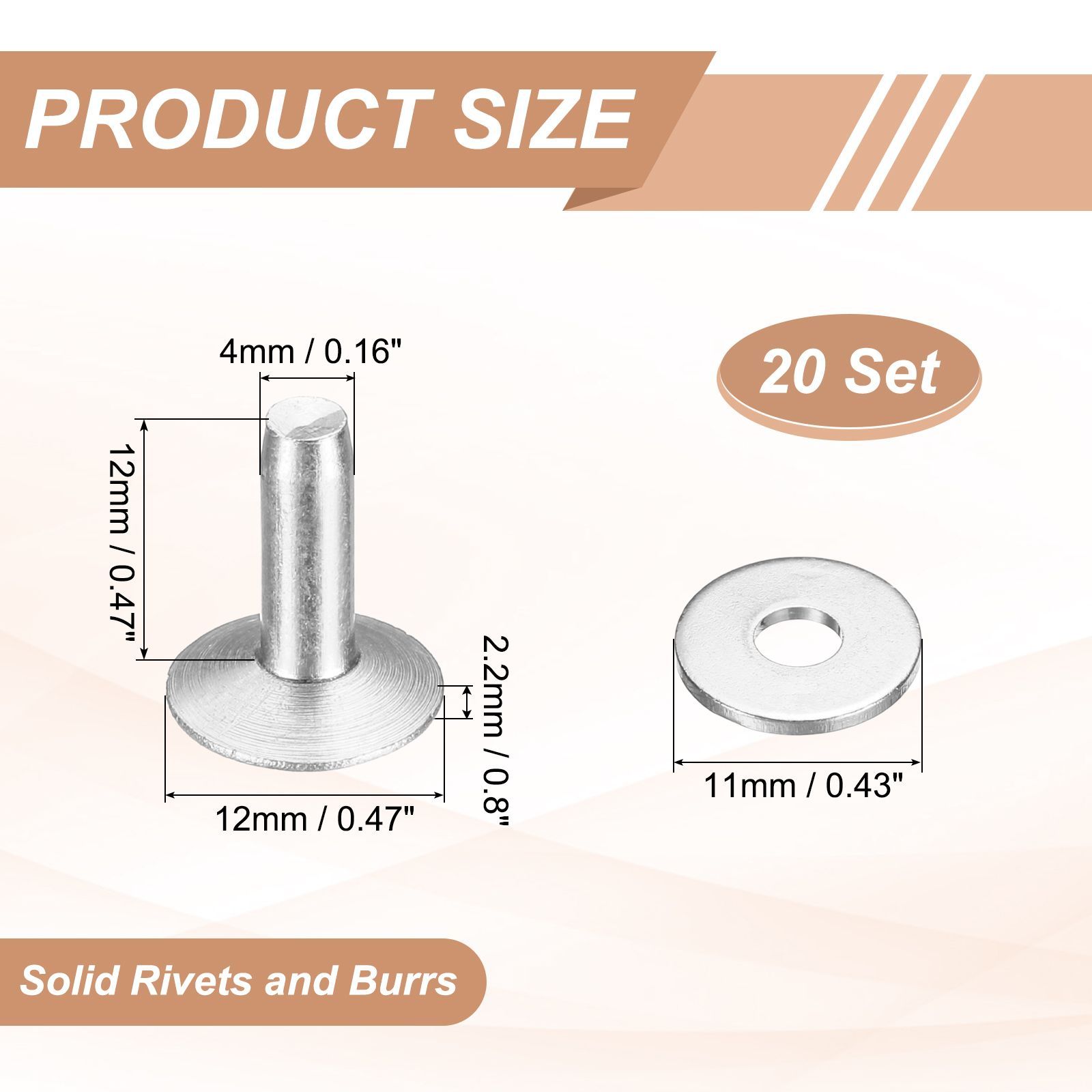 サイズ-アルミニウムリベットサイズ:12x4x12mm/0.47x0.16x0.47インチ(外径*直径*高さ);ヘッド厚さ:2.2mm/0.09インチ。材質:
