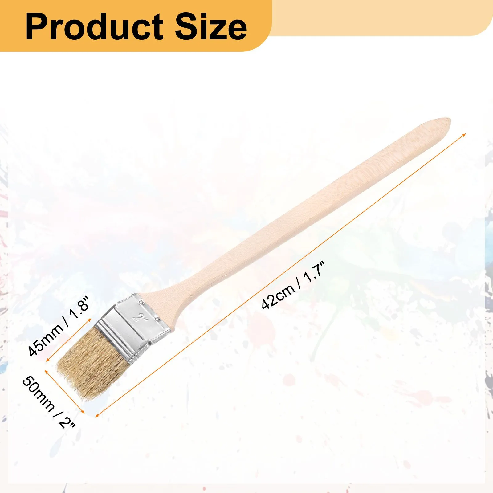 サイズ - 曲がりペイント毛具の全長約42cm/1.7インチ、毛具幅50mm/2インチ、毛具毛長45mm/1.8インチ