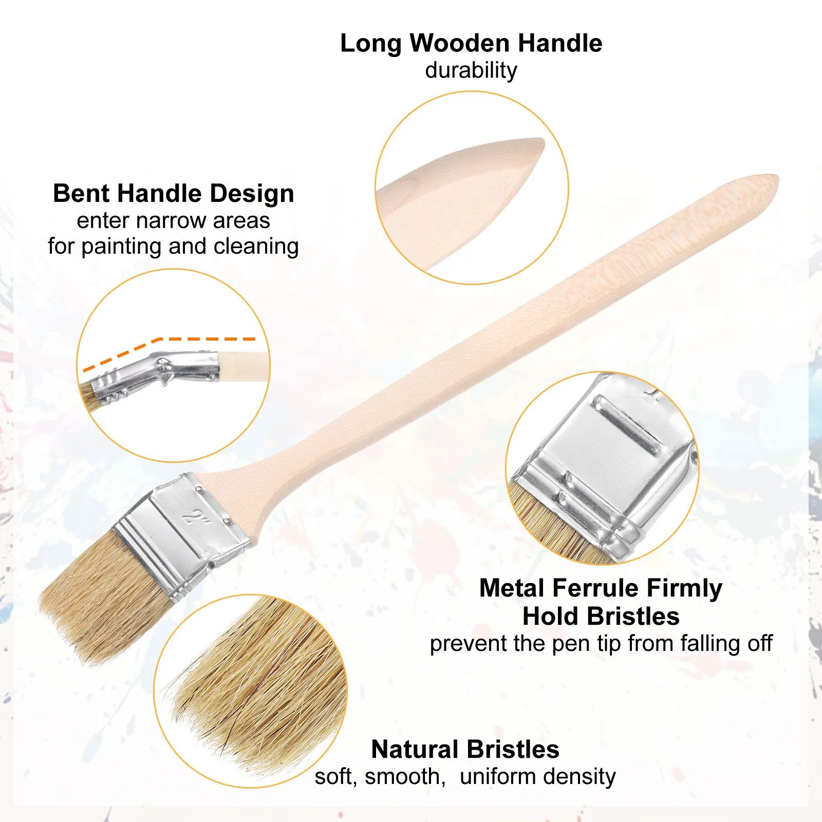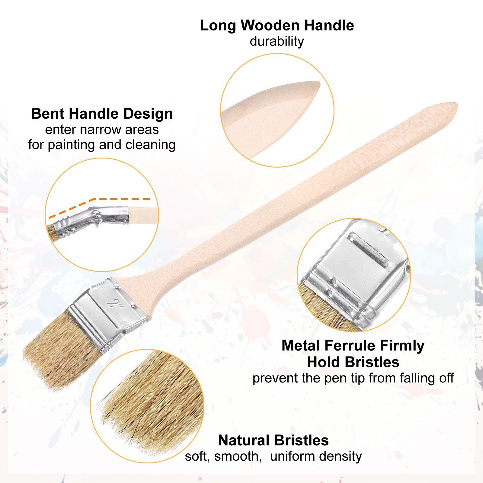 特徴 - 長めの曲がりペイント毛具は狭い部分の塗装や掃除に最適。頑丈なアルミ合金接続部で毛具頭の脱落を防止。木製ハンドルはささくれがなく、塗装作業中の操作性に優れています。