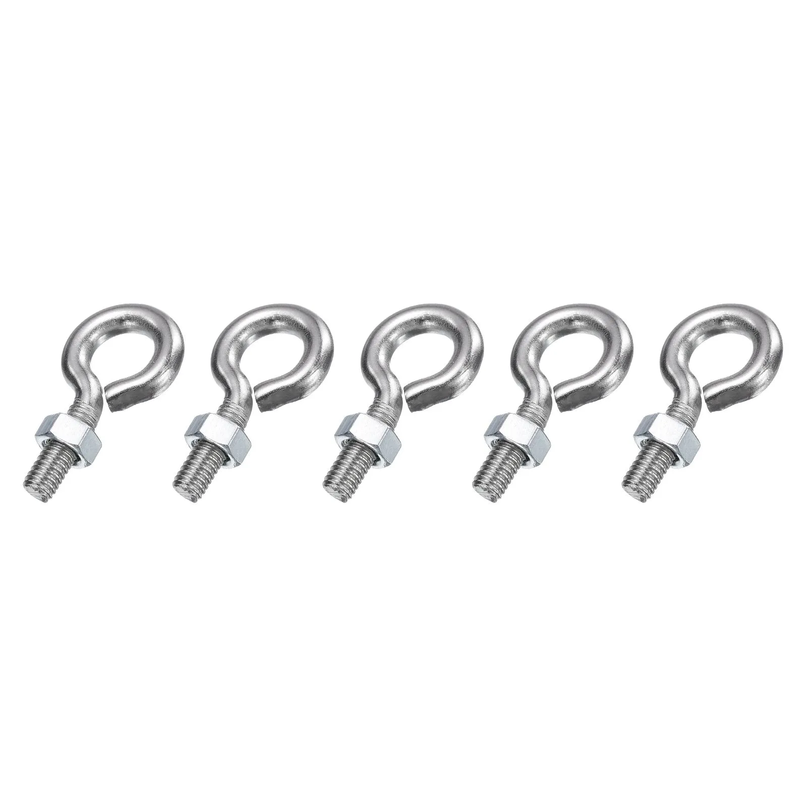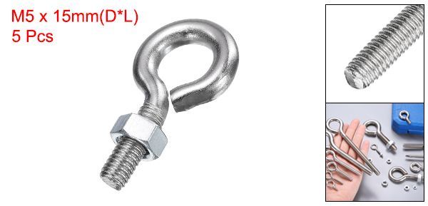uxcell 5個 セット アイ ボルト M5 x 15mm 304 ステンレス スチール ねじ込み 式 アイ ボルト シルバー フック 付き ナット ケーブル 固定 用