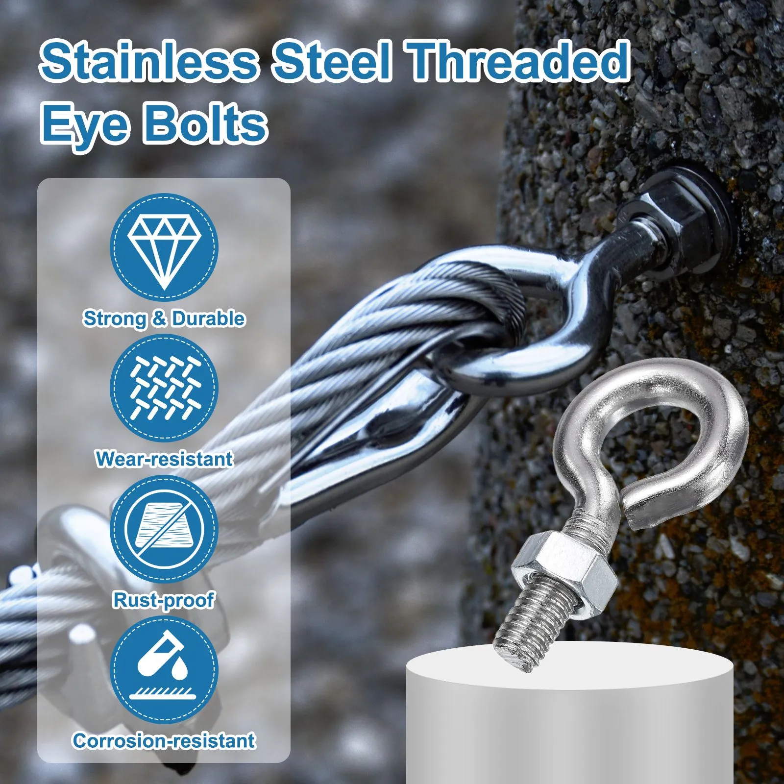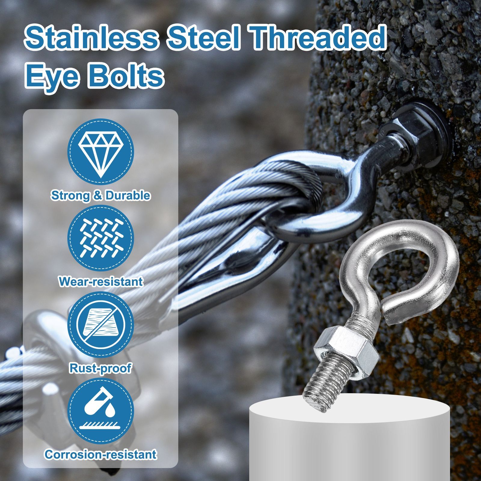 材質:304ステンレススチール製の高強度アイボルトで、耐久性、防錆、耐摩耗性、耐腐食性に優れています。湿気の多い環境でも使用可能で、褪色や滑りにくいです。