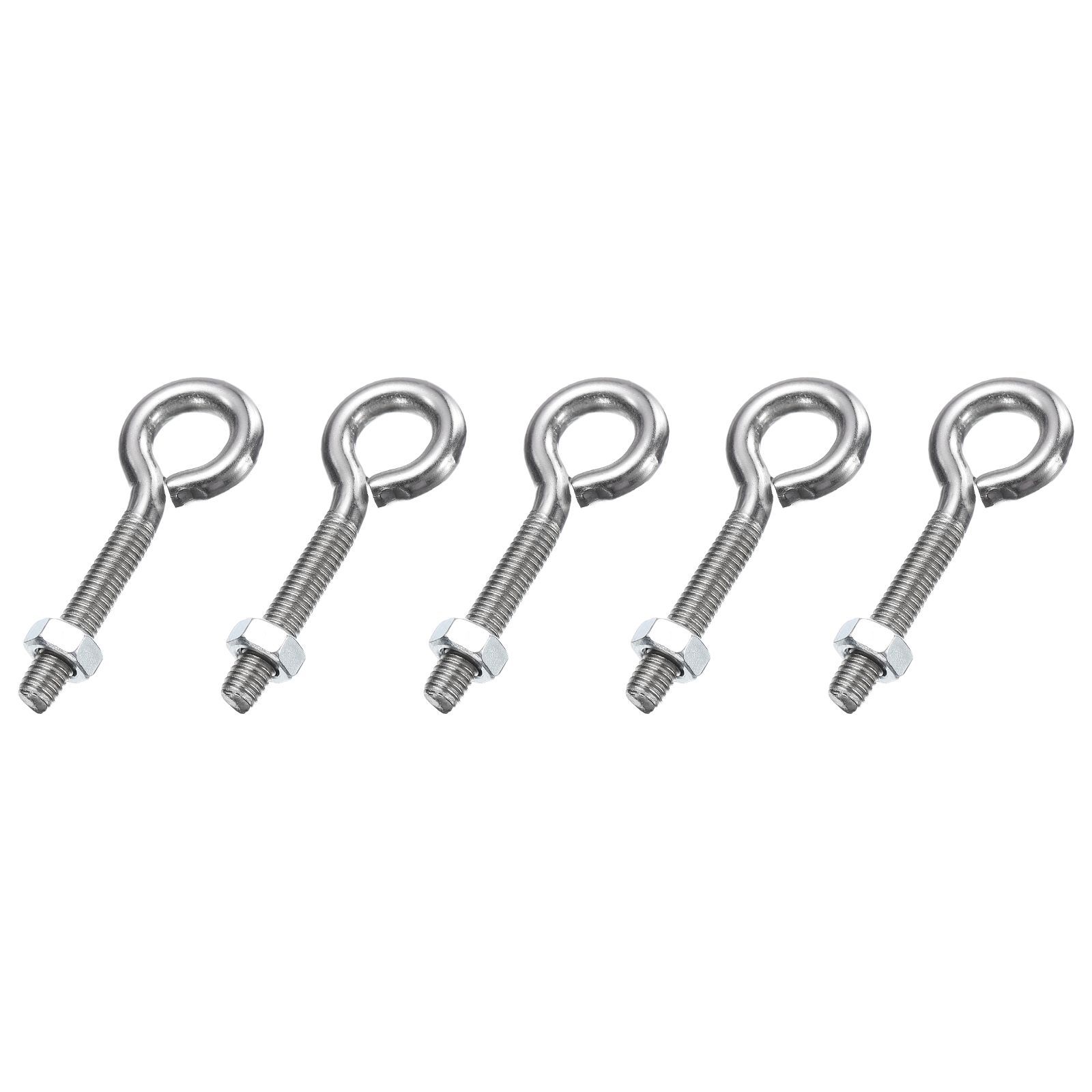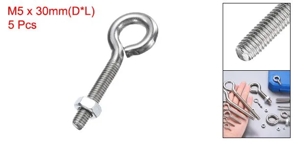 uxcell 5個 アイボルト M5×30mm 304 ステンレス鋼 ネジ付き アイボルト 銀色 アイフック ナット付き ケーブル固定 吊り下げ用