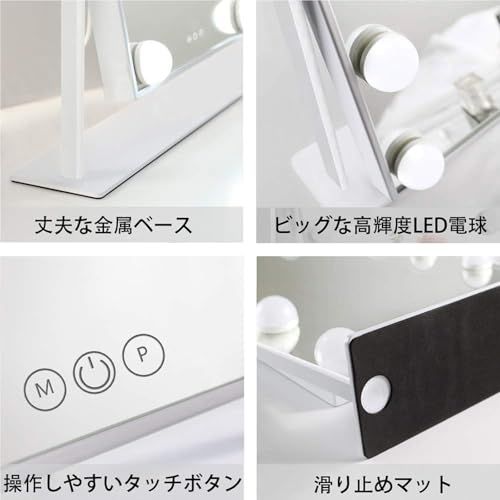 10倍拡大鏡・明るさメモリー機能:吸盤式10倍拡大鏡が付き、毛穴の状態やアイラインのズレもチェックでき、肌の細やかい状況とスキンケアをしっかり把握します。視力が低下して見えづらい方に、メガネがなくてもメイクできます、メイクも便利です。明るさメモリー機能により一度消してもお好みの明るさで再点灯できます。