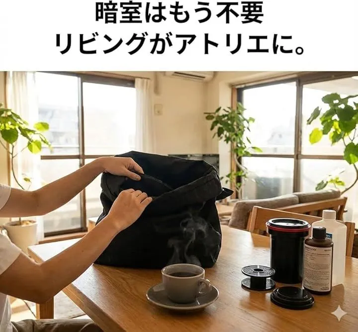 撮影後のフィルムの取り出しや、現像タンクへの装填など、暗室がない環境での作業には常に不安がつきまといます。