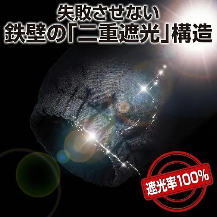 本製品は、遮光性を極限まで高めるために「面ファスナー+ジッパーの二重密閉構造を採用しました。