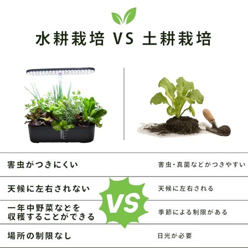 水耕栽培キット 簡単操作・水耕栽培セット。・LED植物成長ライト・自動水循システム・植物に最適な生育環境を提供し、室内で手軽に家庭栽培を楽しめます [ ASLT ] (ブラック)so