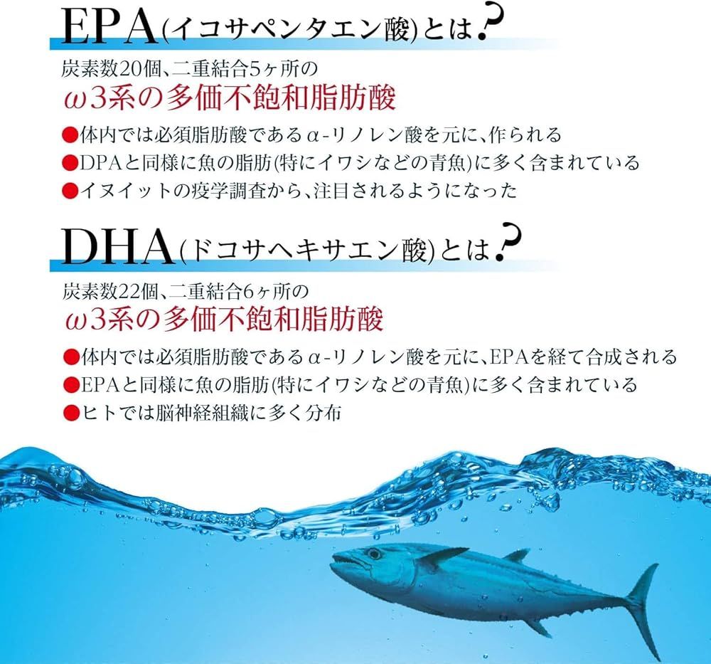・EPA・DHAを含むイワシ・マグロ・カツオ由来の魚油を魚の苦手な方にもご利用しやすいようソフトカプセルに詰めた食品です。食事の偏りが気になる方や魚嫌いの方、健康が気になる方などの栄養補助食品としてお召し上がりください。 ・事項