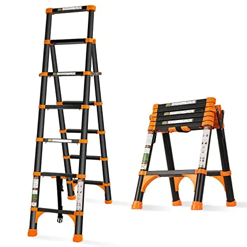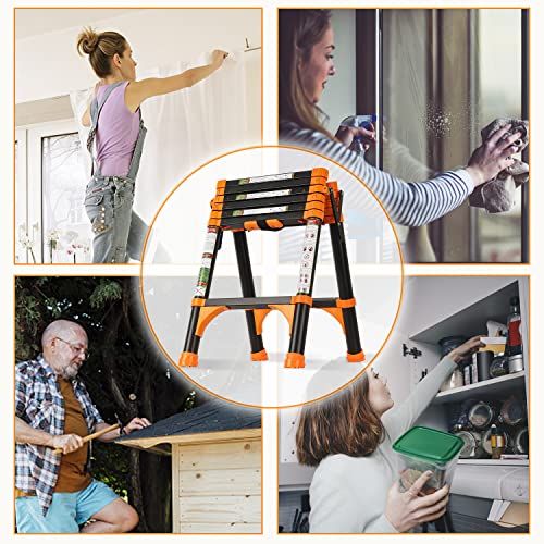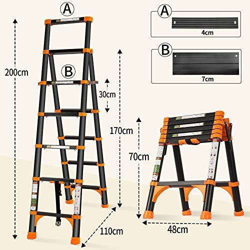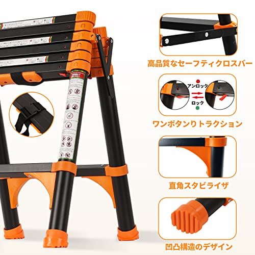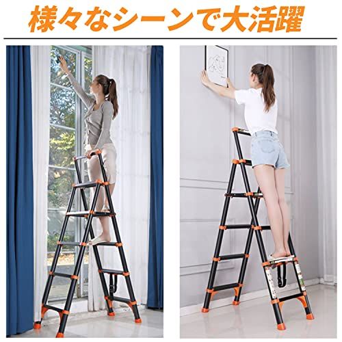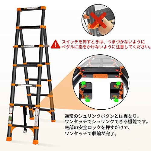 RIKADE 伸縮脚立はしご 踏み台 軽量伸縮自在 折りたたみ 持ち運び便利 室内屋外両用 アルミはしご ?自動・安全ロック付き 耐荷重150 kg (ブラック+オレンジ, 1.7+2.0m)so