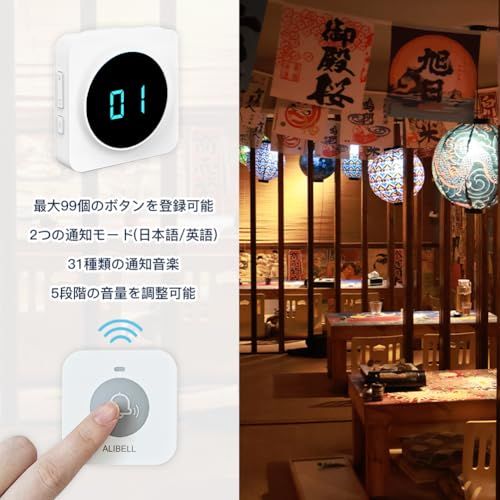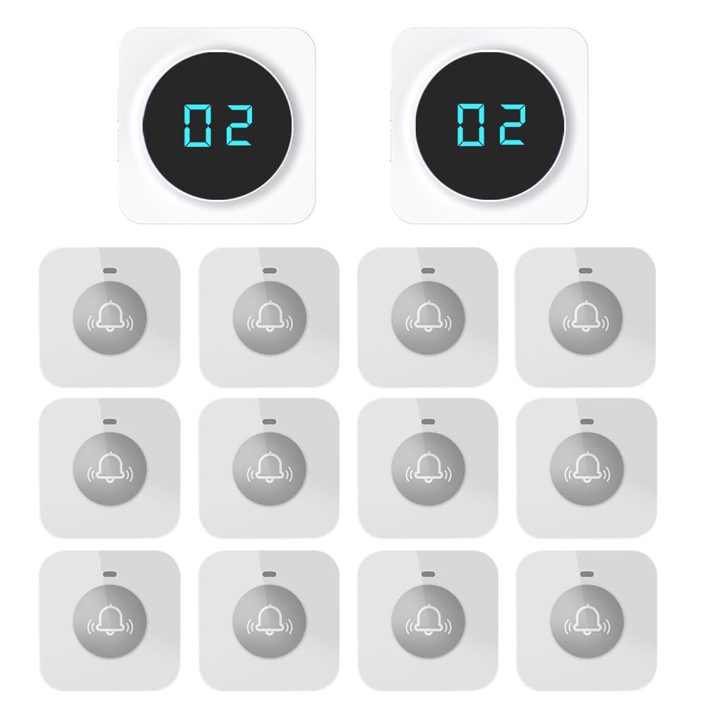 ALIBELL 業務用呼び出しベル 呼び出しベル 飲食店 呼び鈴 ワイヤレス 介護呼び出しベル 無線呼び出しチャイム ワイヤレスチャイム スタッフ呼び出しベル(受信機*2+子機*12)so