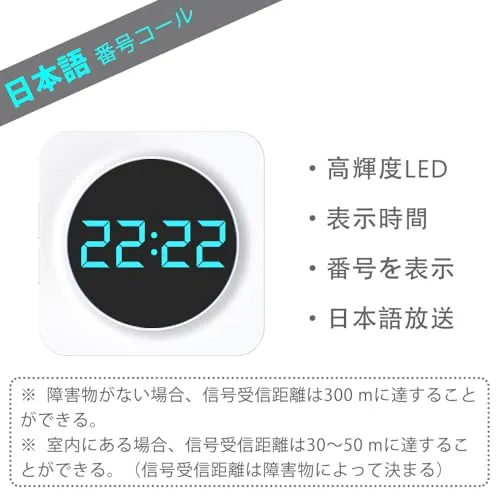 【日本語音声放送】番号設定:01-99。放送タイプ:日本語・英語・31種類着信音放送。5段階の音量調整可能、0消音。簡単にナンバークリアが可能。多忙な業務時の呼び出しや合図に。あらゆる業務効率化にお役立てください。