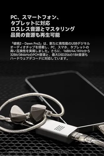 【破暁 - DawnPro 2】は、新たに高性能のUSBデジタルオーディオチップを搭載し、PC、スマホ、タブレットの高い互換性を実現しました。さらに、16Bit/44.1KHzから32Bit/384kHzのPCM音源と、最大DSD256の1Bit音源もハードウェアデコードに対応しています。 3基のLDO電源チップで個別に電力を供給: