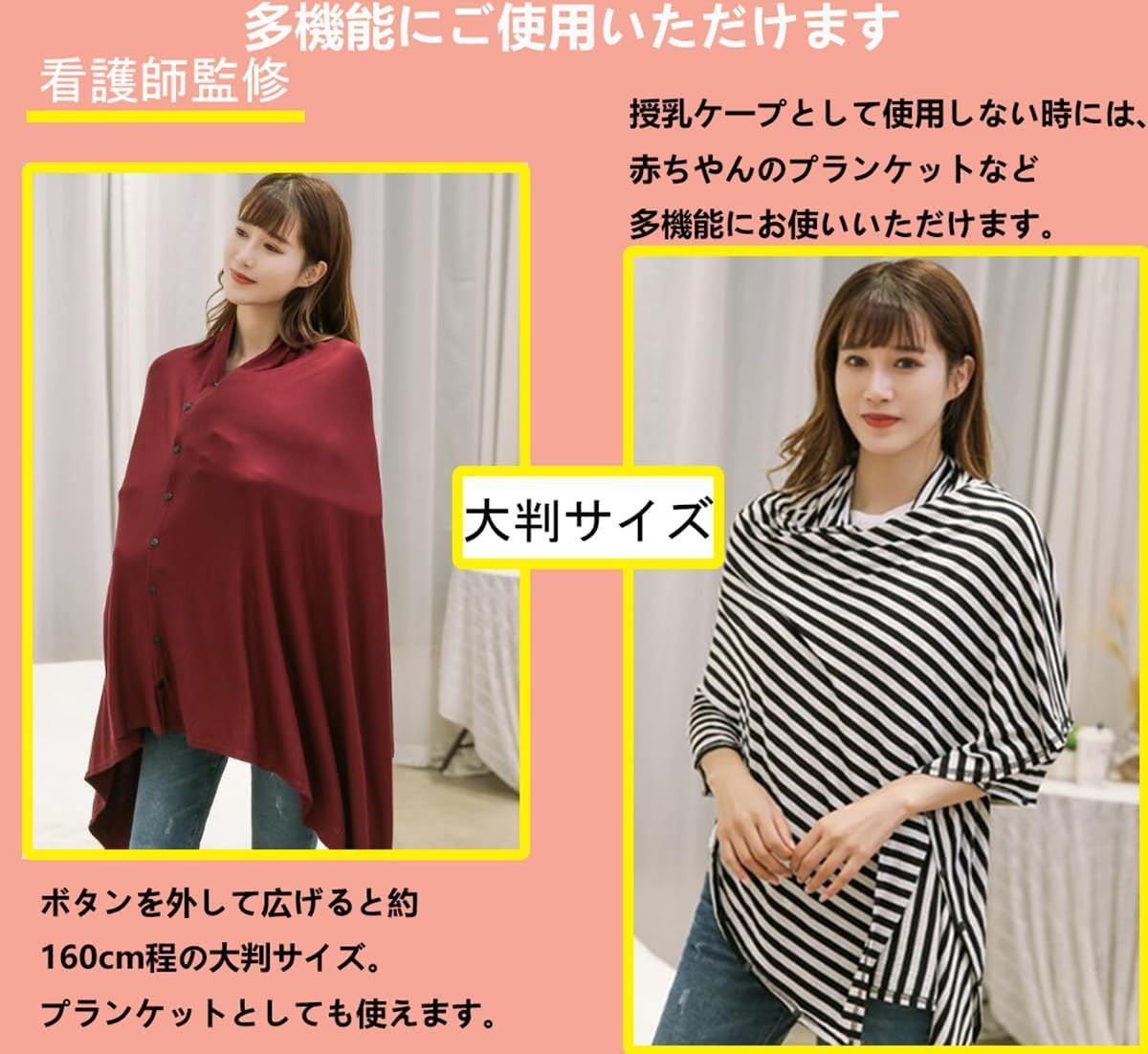 【用途はいろいろ】授乳ケープとしてはもちろん、ひざ掛け、ストール、おくるみ、ベビーカーカバーとして、 様々な場面で活躍してくれる授乳ケープです。赤ちゃんが眠る布団や毛布としても使用できます、車のシートカバー、ベビーカーカバーもでき、機能性が大幅に向上しました。