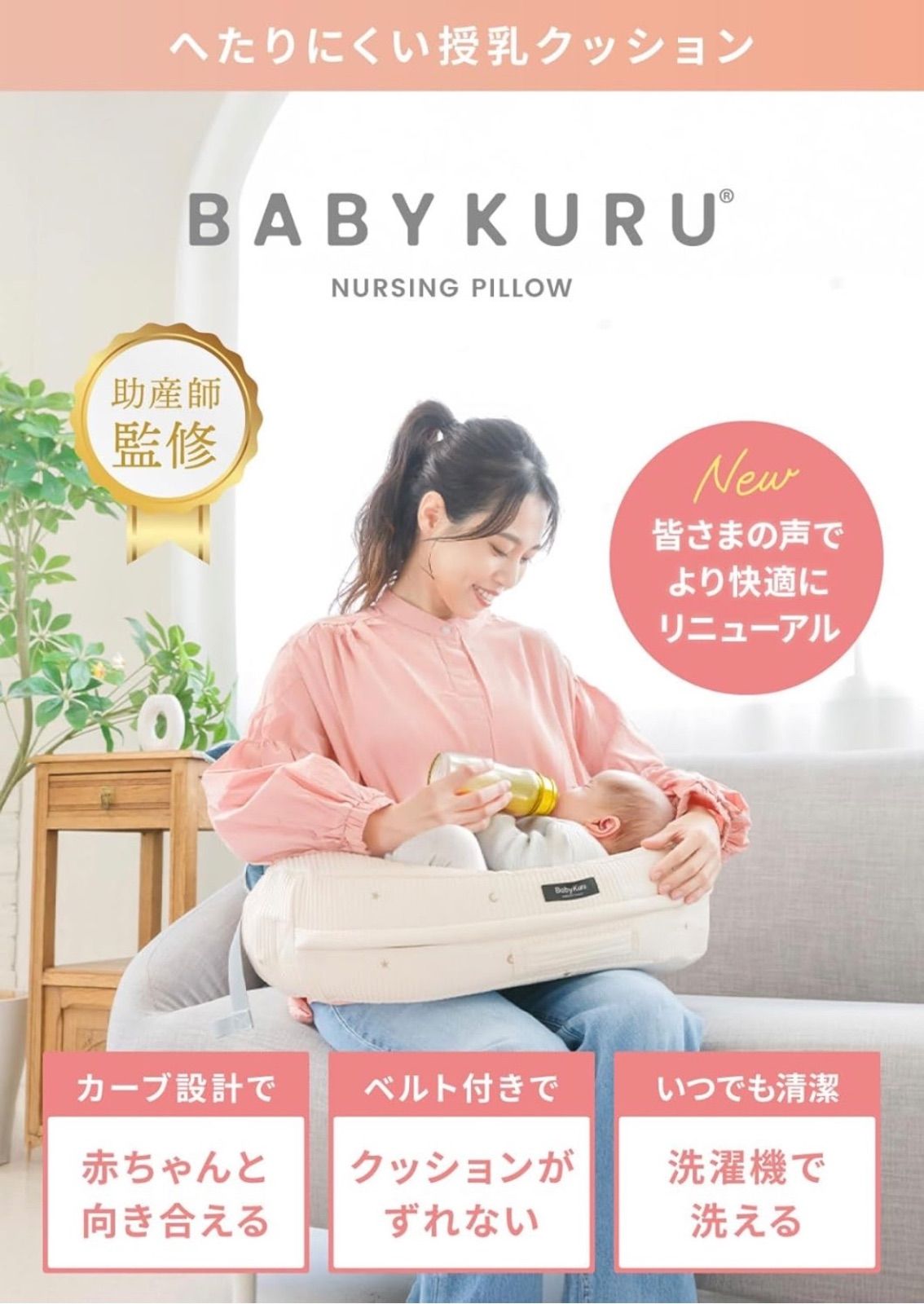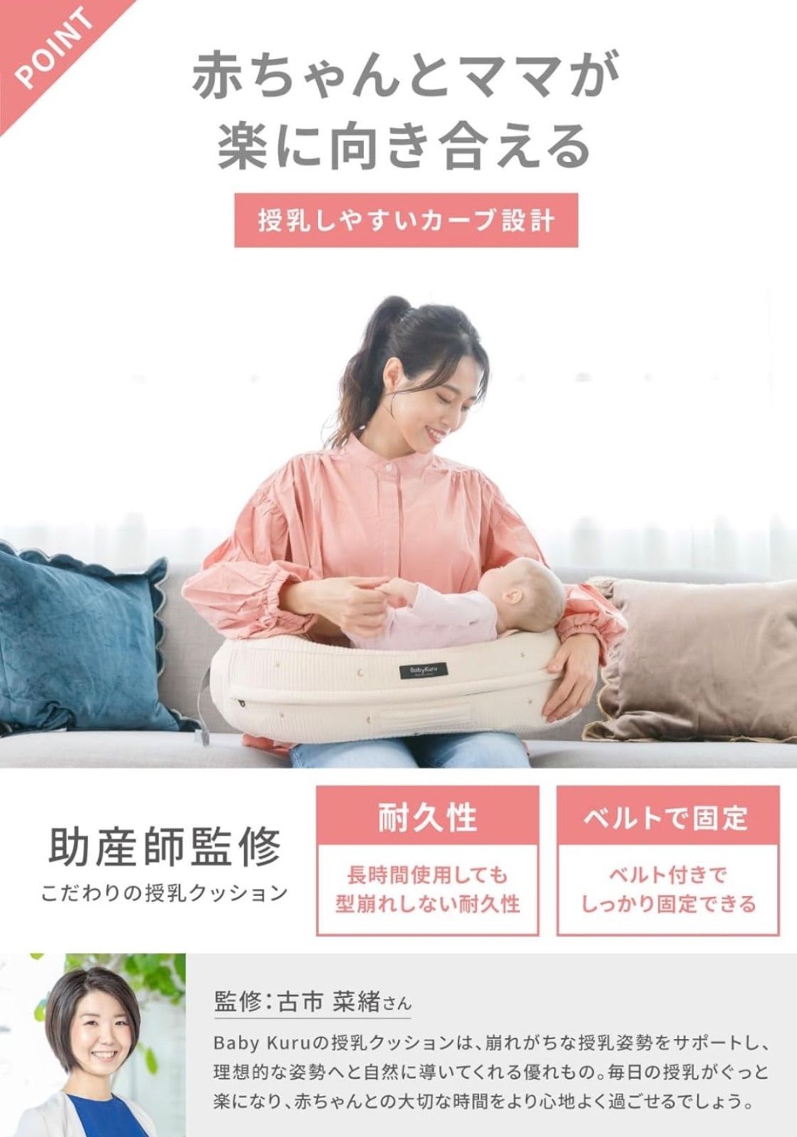 Baby Kuru® 授乳クッション 助産師監修 へたらない ナーシングピロー 授乳 クッション ウレタンフォーム アイボリー イブル 洗濯可能 授乳まくら 洗える カバー 妊婦 授乳 出産準備 ベビー 赤ちゃん