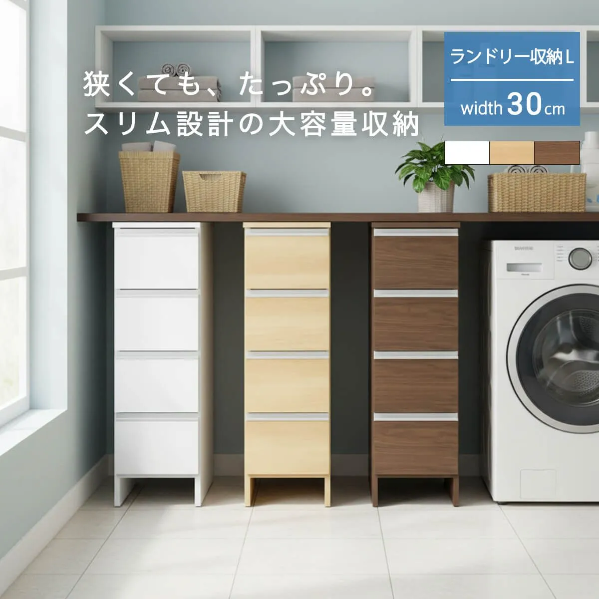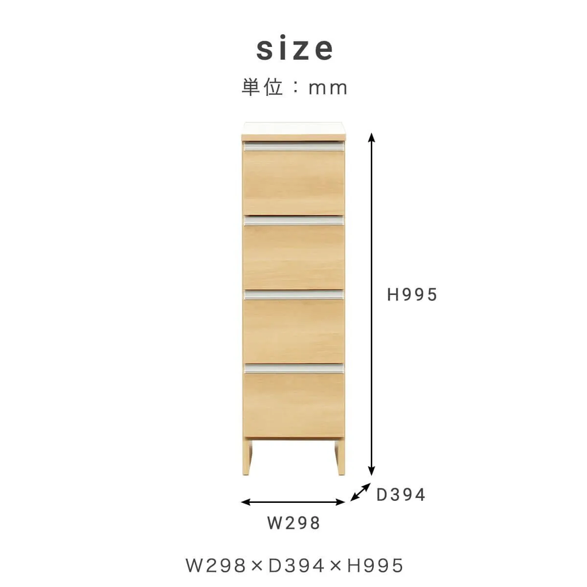ランドリー収納 スリム 幅30cm 高さ100cm ロータイプ サニタリー チェスト 日本製 国産 引出 4段 幅29cm 「才:5」
