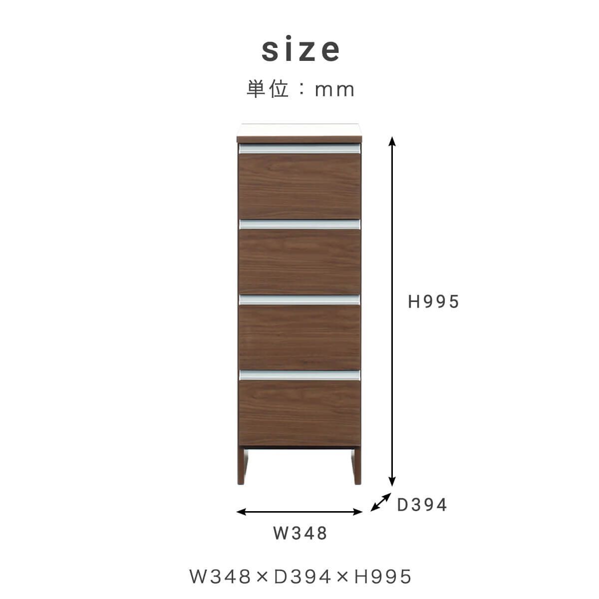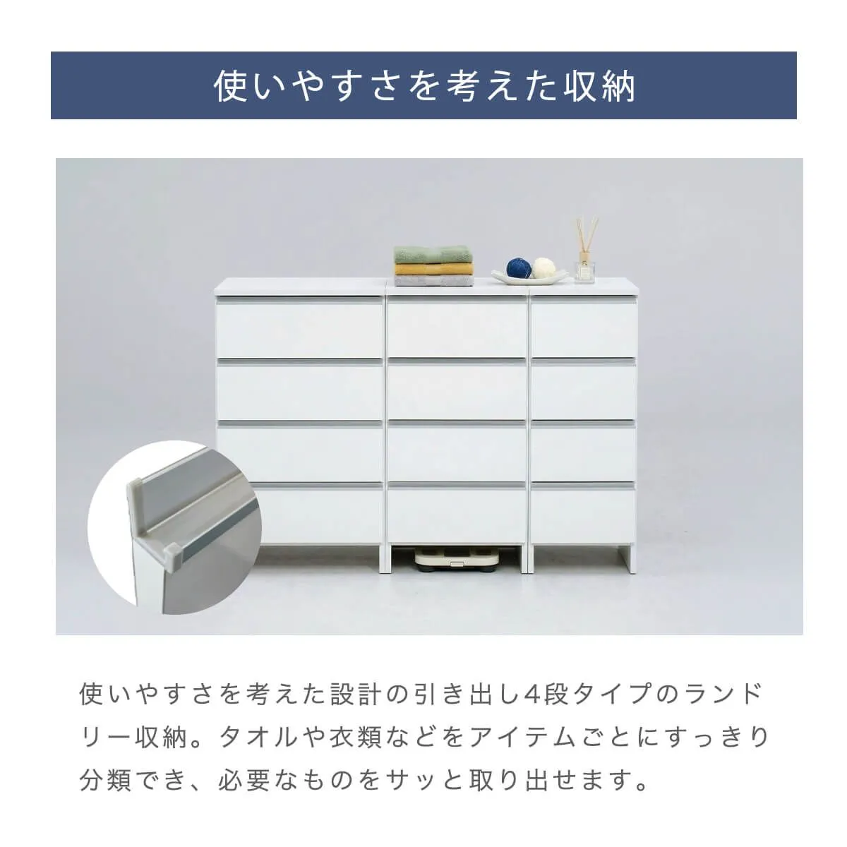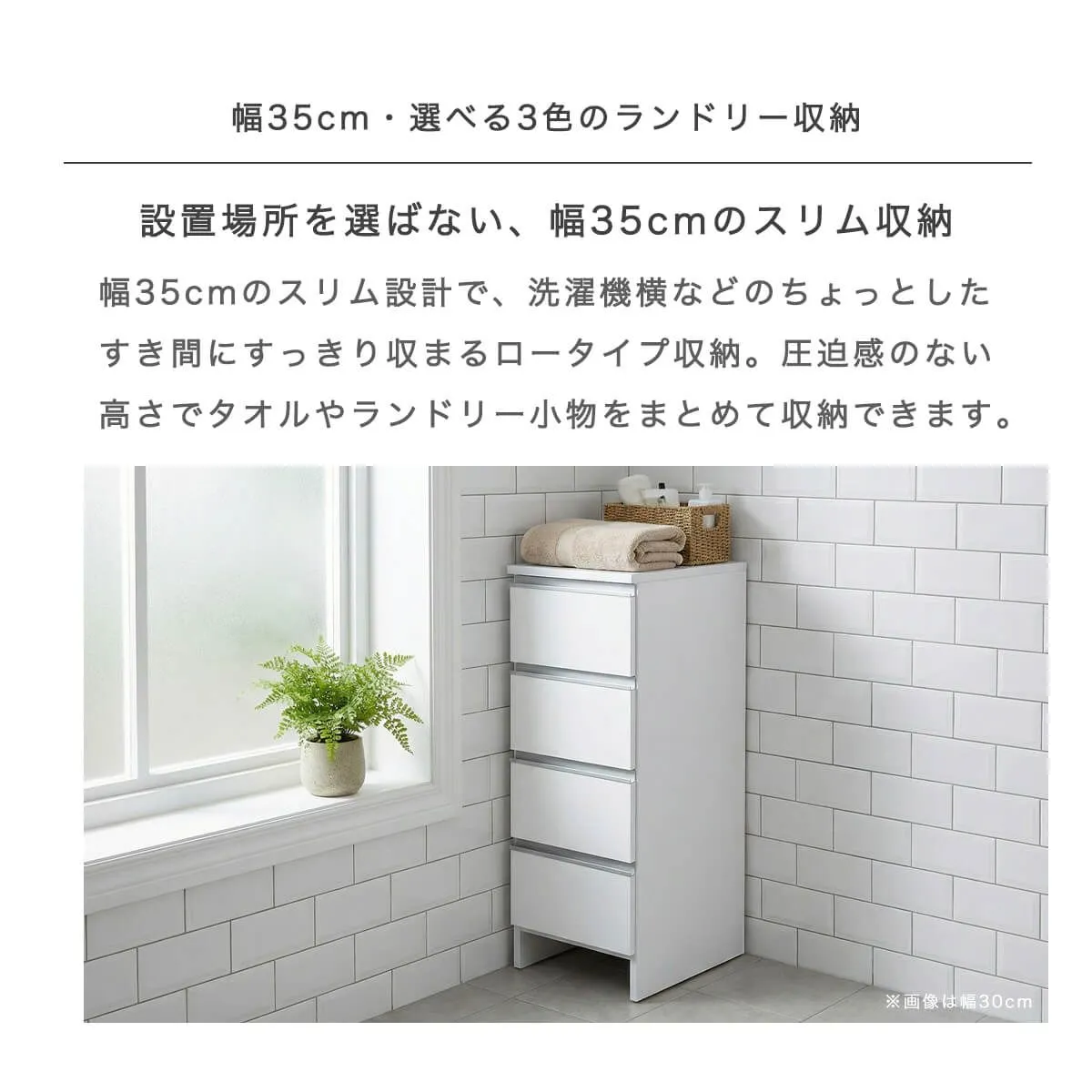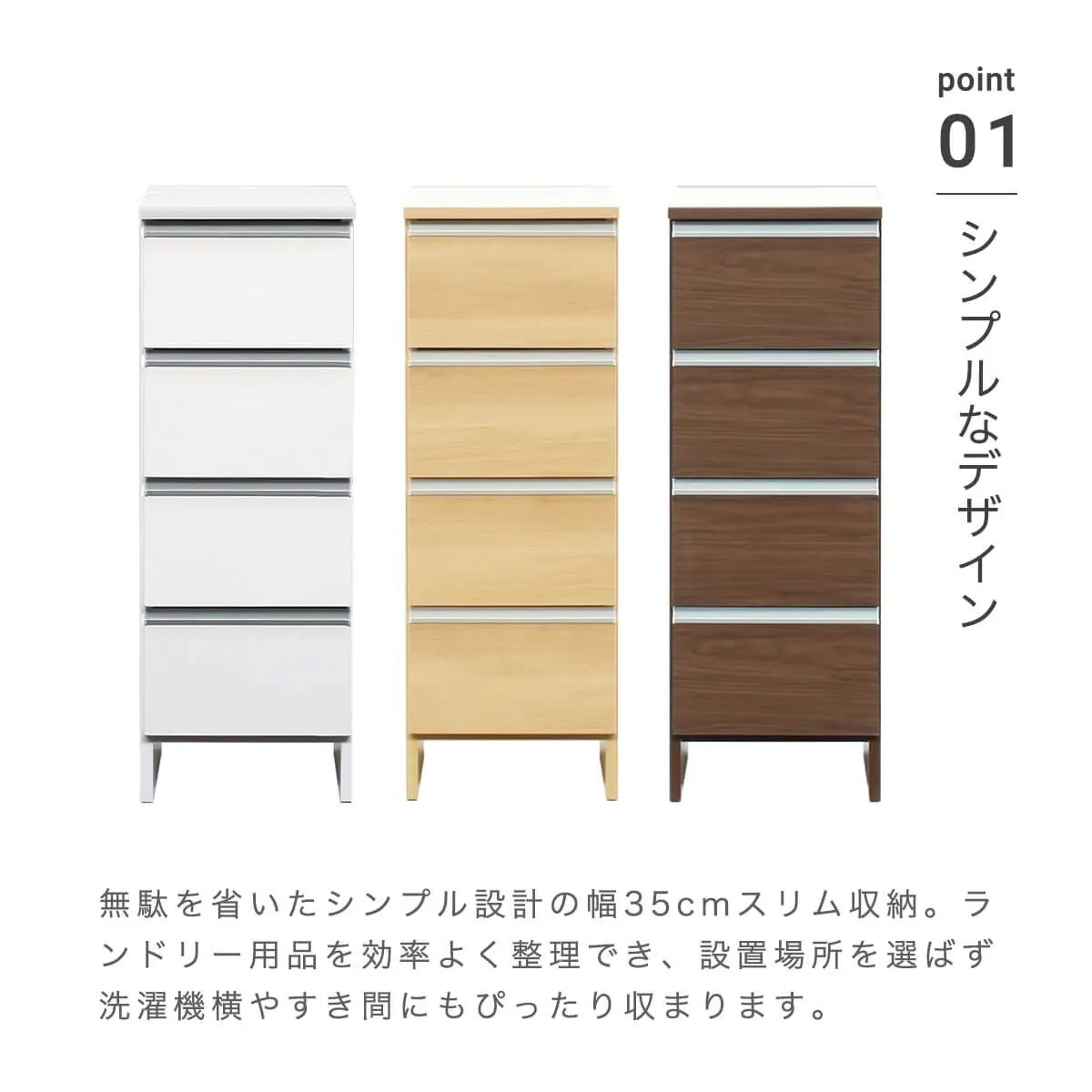 ランドリー収納 スリム 幅35cm 高さ100cm ロータイプ サニタリーチェスト 日本製 国産 引出 4段 コンパクト 幅34cm 「才:6」