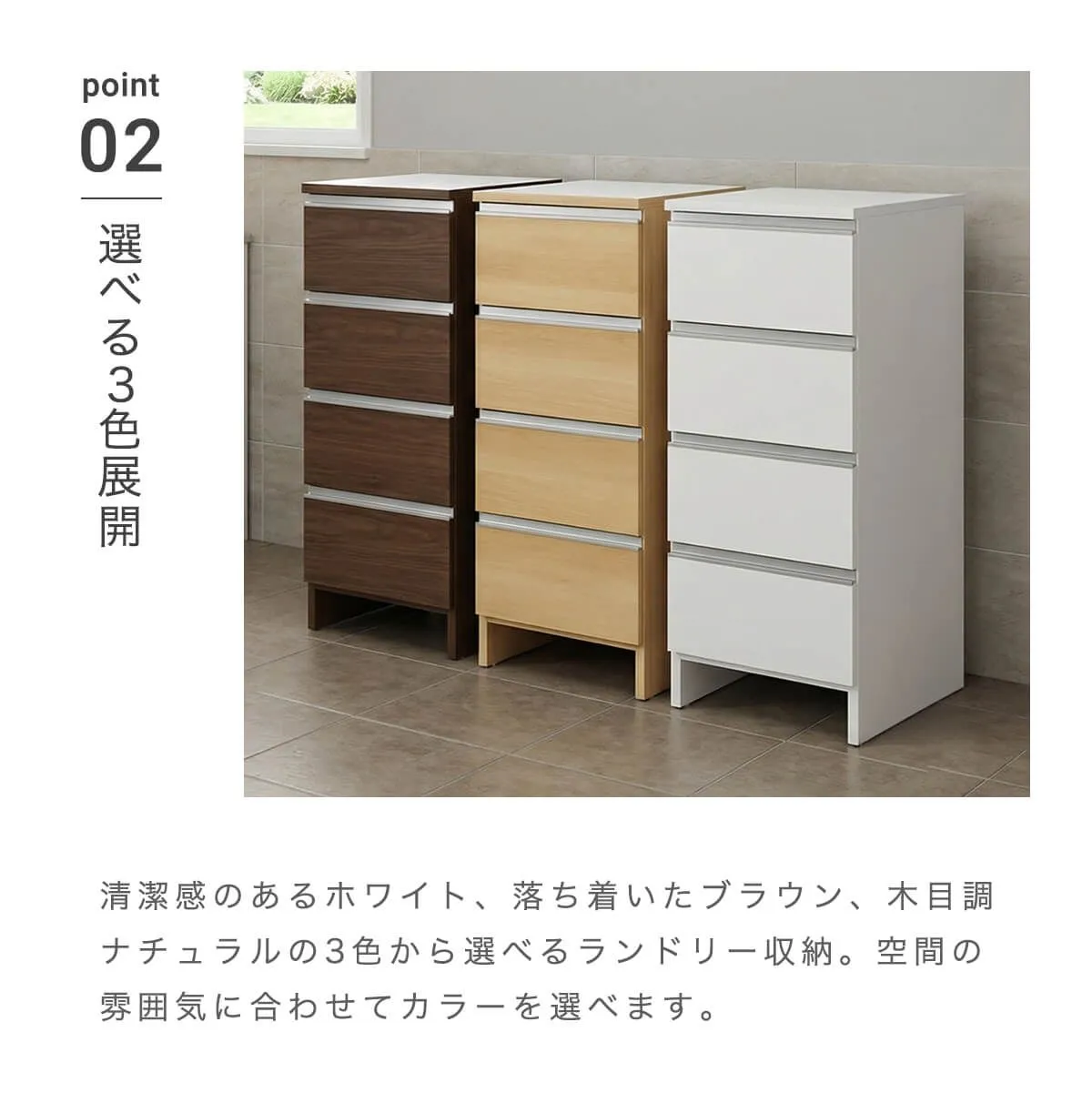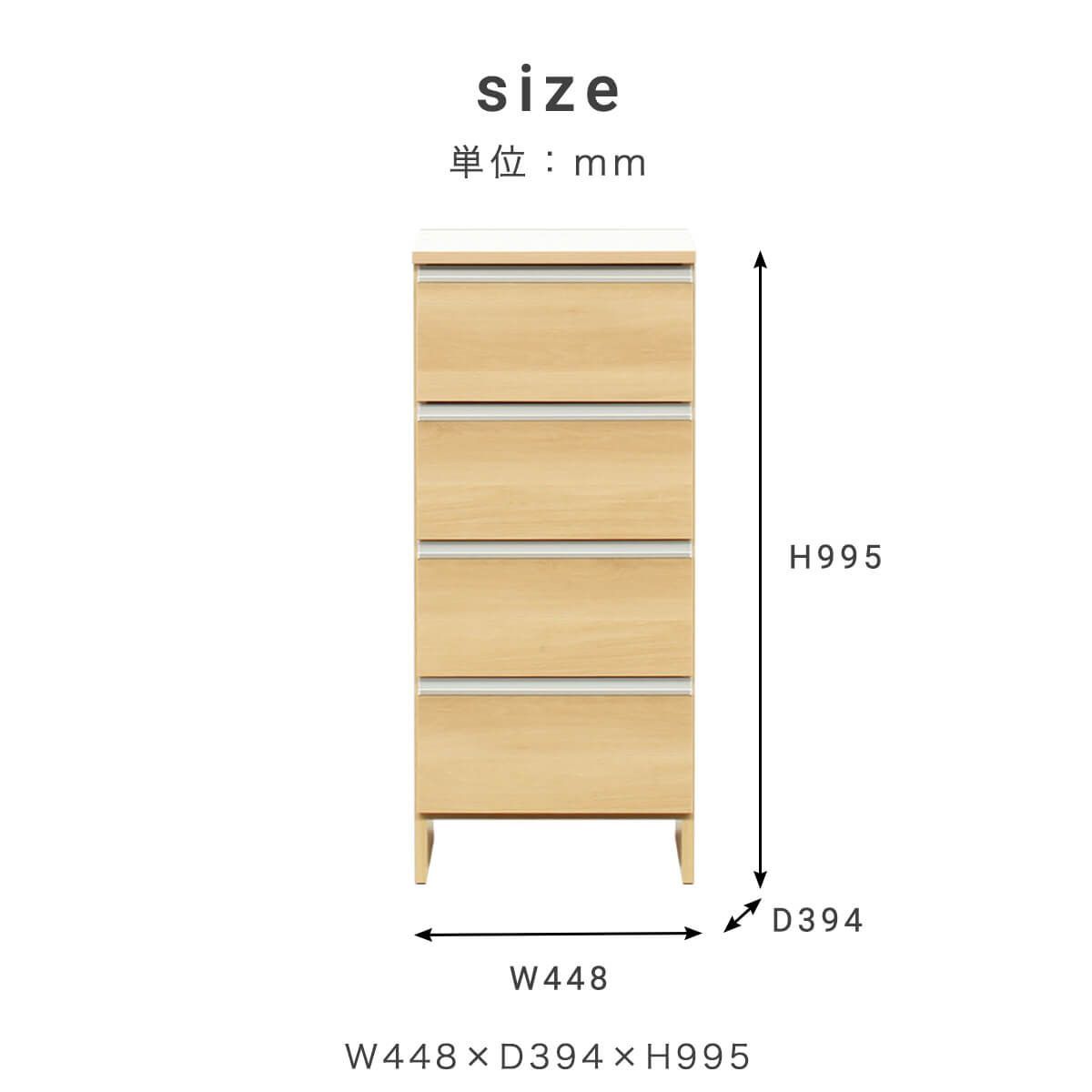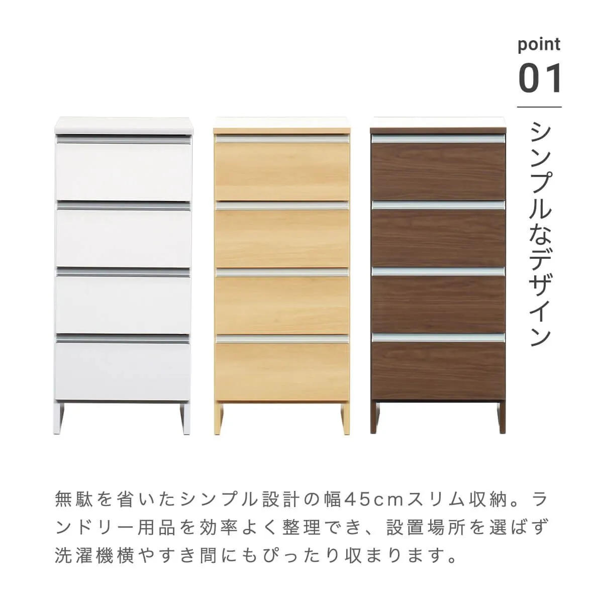 ランドリー収納 スリム 幅45cm 高さ100cm ロータイプ サニタリー チェスト 日本製 国産 引出 4段 幅44cm 「才:8」