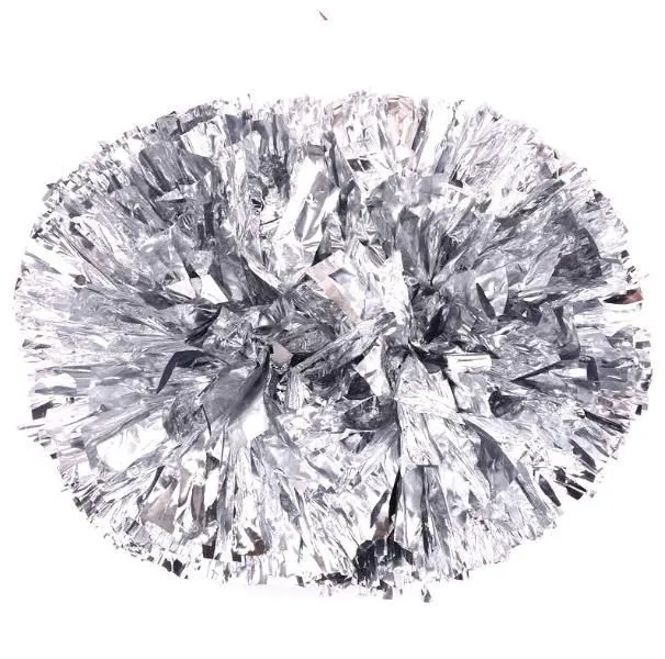 <在庫処分>チアリーディング ポンポン 2個セット 中サイズ 指輪付き 密閉型 シルバー bu1
