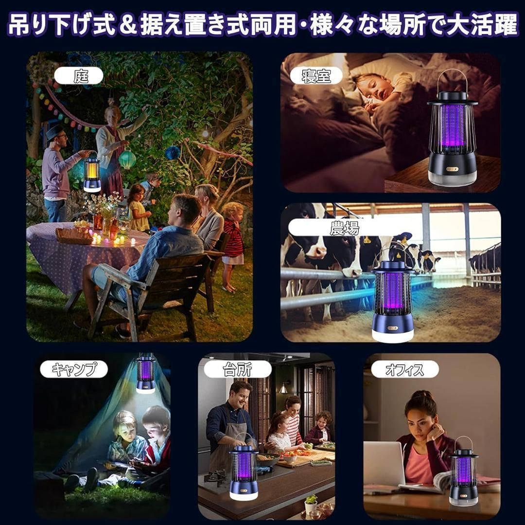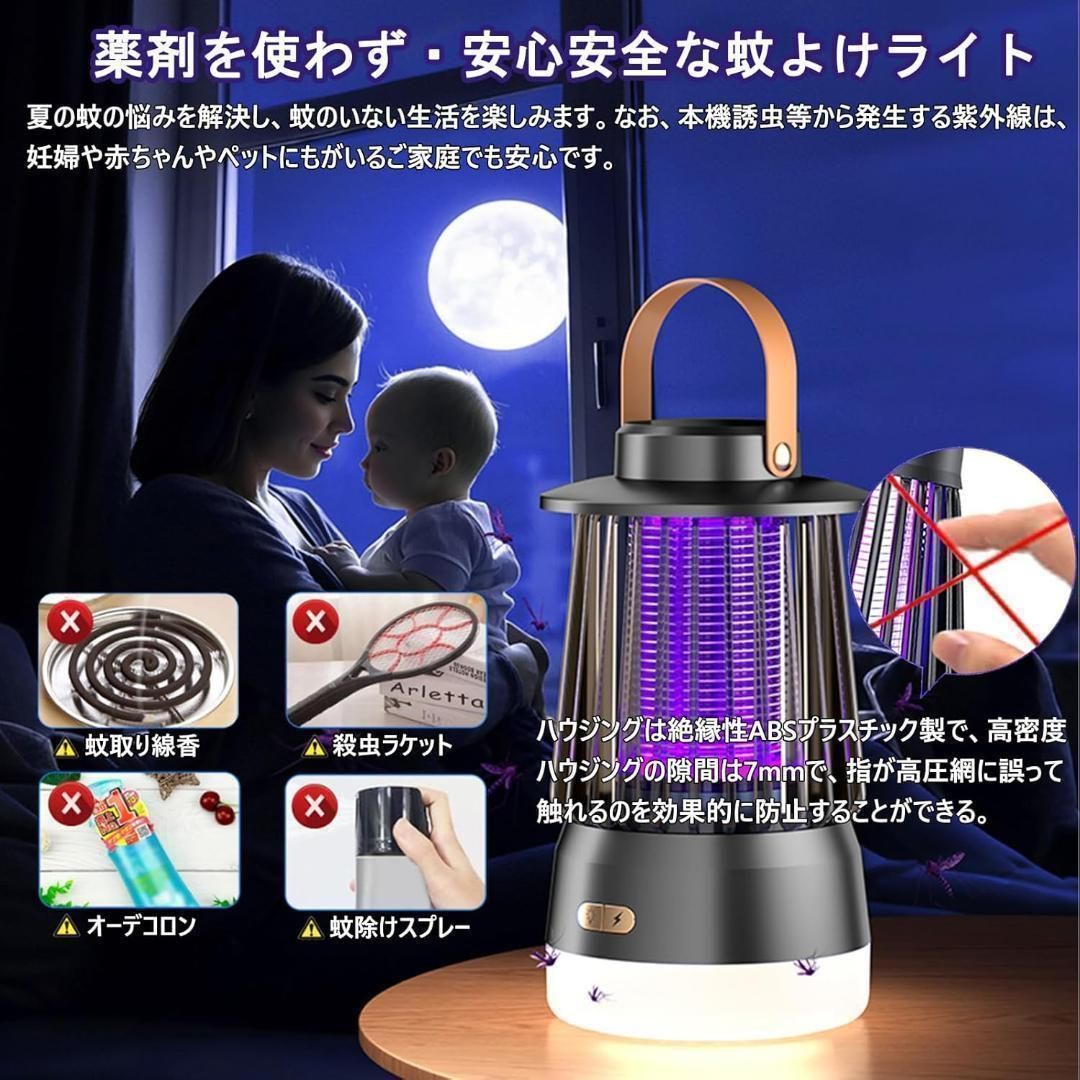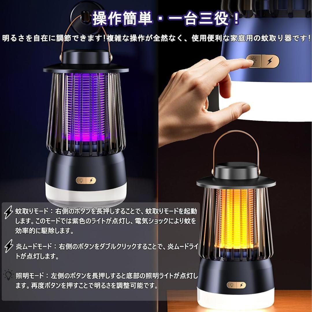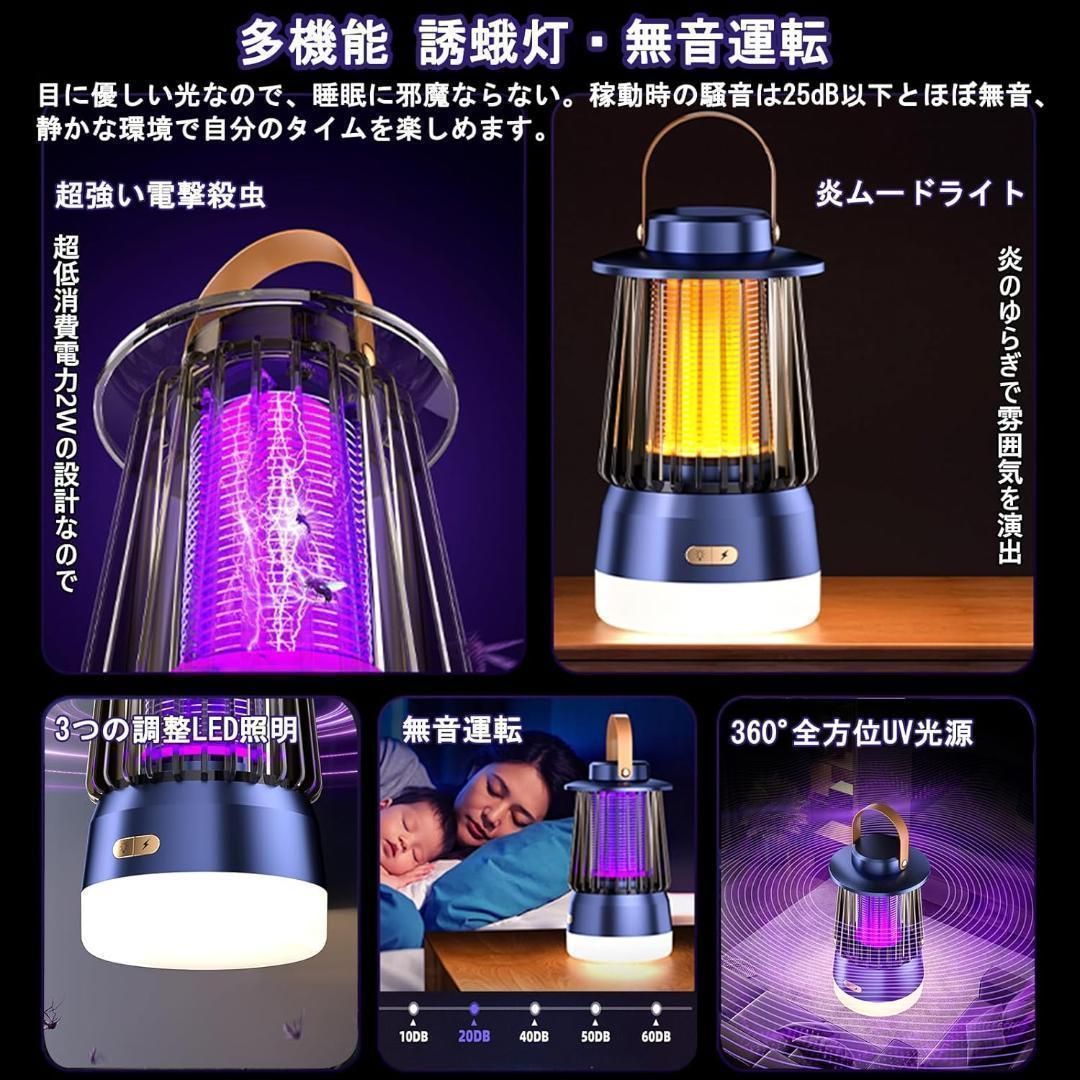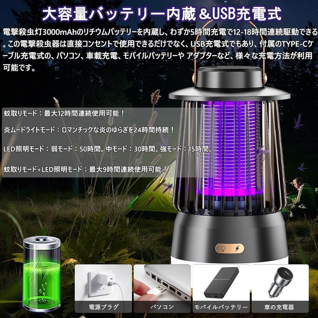 【新品未使用】電撃殺虫器 充電式 殺虫灯 炎ムードライト LED照明 3in1 超強力 2000V高圧電撃 紫外線誘引 炎ムードライト 最新モデル 薬剤不要 無臭 3000mAh大容量バッテリー内蔵 最大50時間点灯 吊り下げ 据え置き マルチ波長
