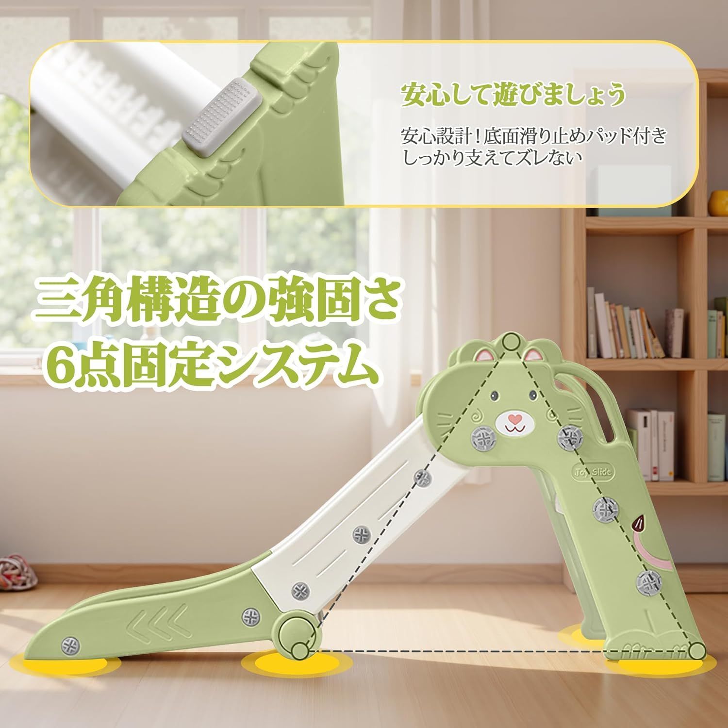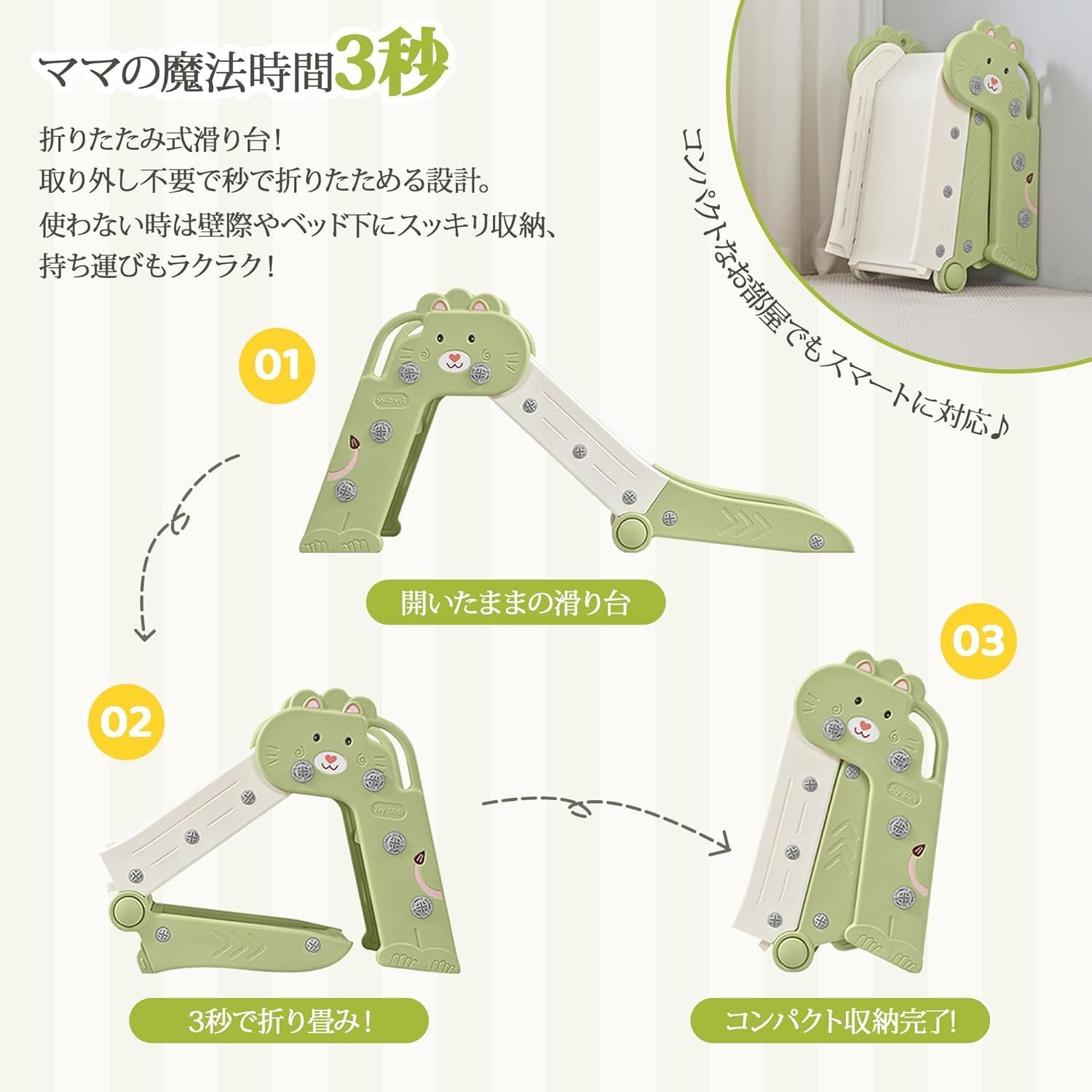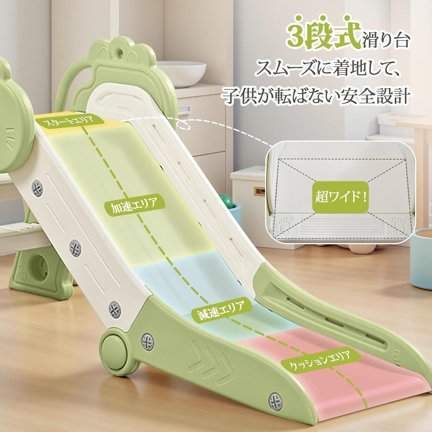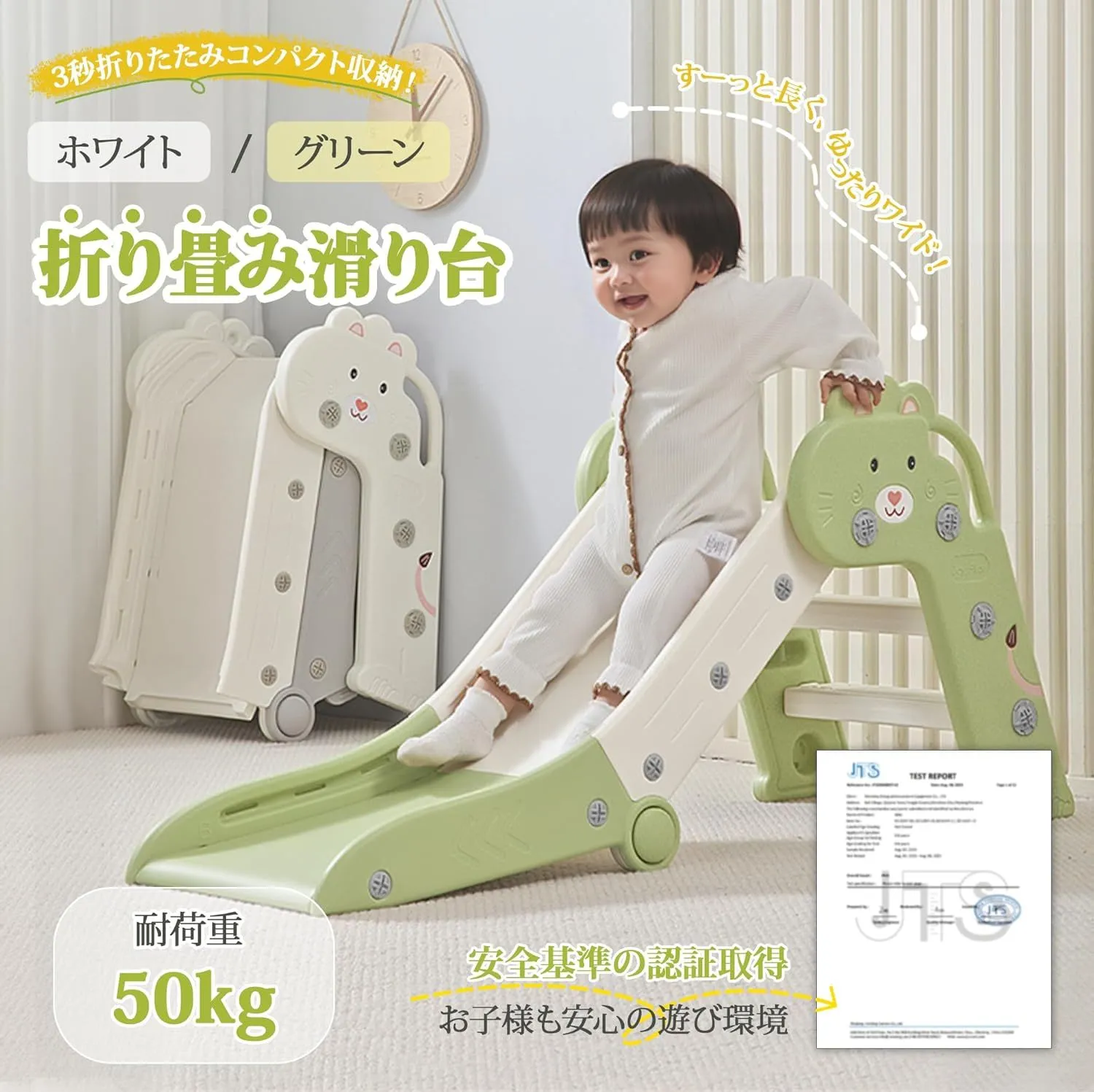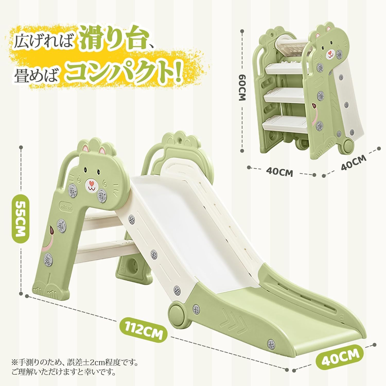 組み立て済み【グリーン】すべり台(112×40×55cm)室内 折りたたみ 滑り台 屋外 すべりだい キッズスライダー 室内遊具 簡単組立 子供用 安全設計 コンパクト