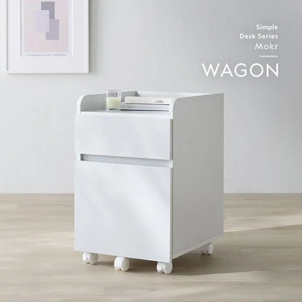 ■WAGON ・大小引き出し付きの収納ワゴン 大小2杯の引き出しを備えたワゴン。スライドレール仕様で開閉もスムーズ。 書類や小物の整理に便利です。 スライドレール仕様