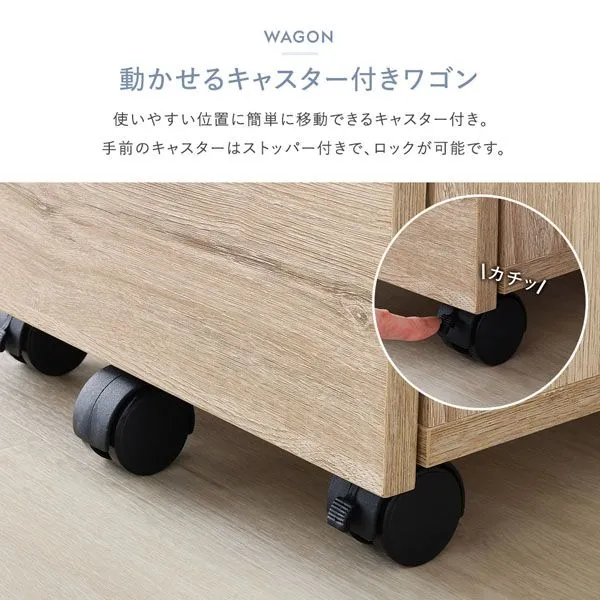 使いやすい位置に簡単に移動できるキャスター付きワゴンです。