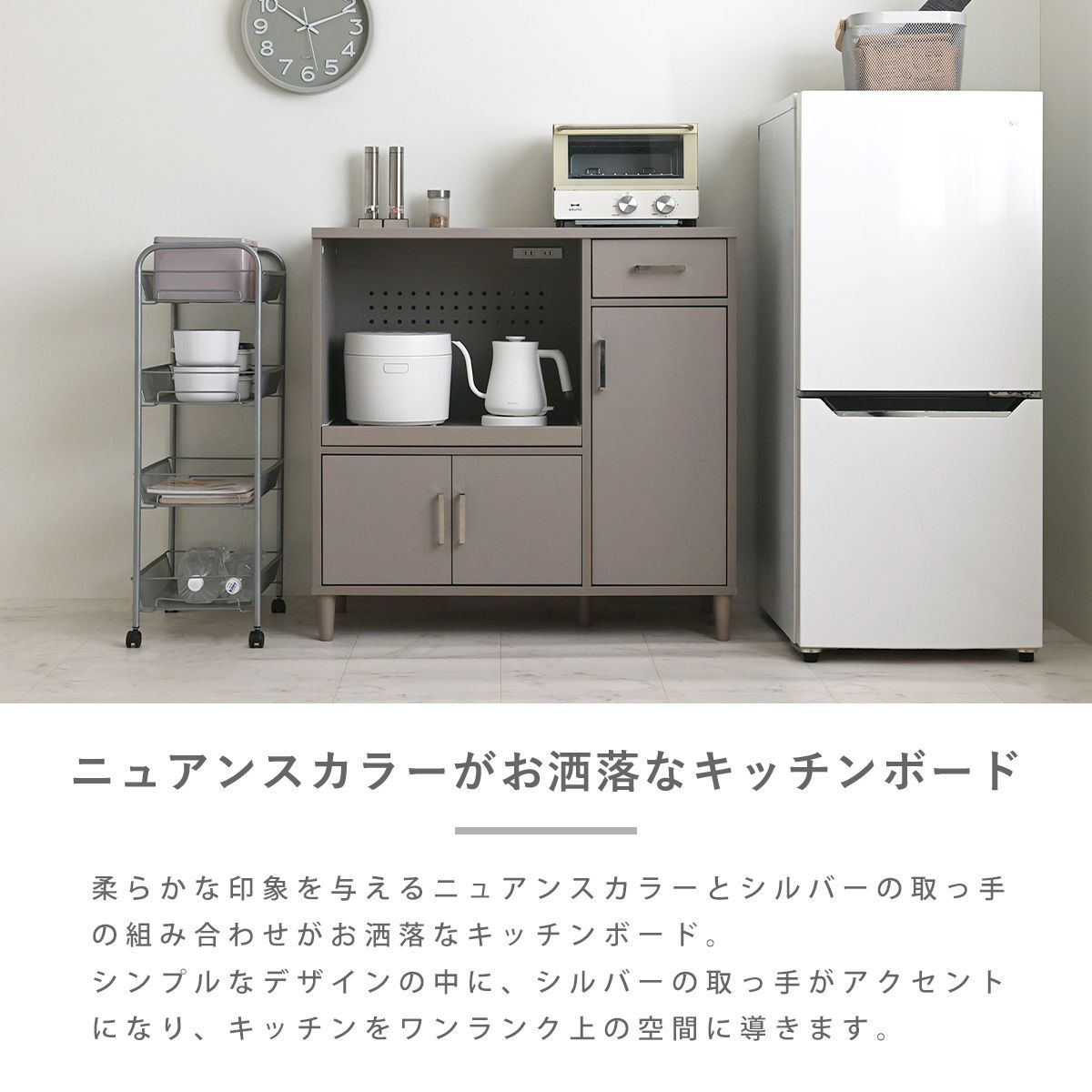 [幅88cm] レンジボード キッチンボード HIRSE ヒルセ キッチン収納棚 レンジ台 食器棚 炊飯器 調理器具 3401