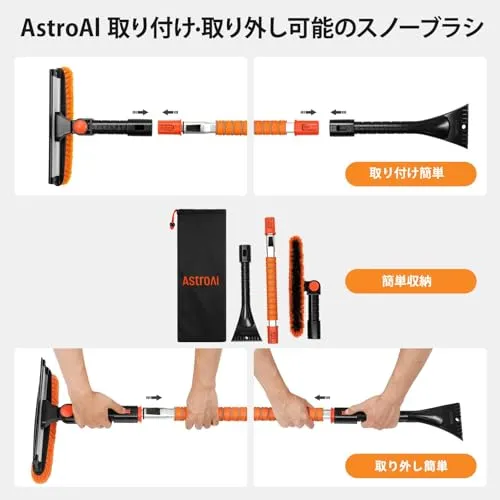 AstroAI 131-158cm スノーブラシ 車 除雪ブラシ 雪かき 6 in 1 多機能 車用スノーブラシ アイススクレーパー 伸縮式アルミハンドル 雪対策 10段階調整可能 270°回転 自動車 トラック SUVに対応 スクイージ付 (オレンジ,★tm