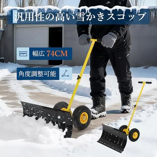 ガービー(Garvee)雪かき 雪かき機 雪かきスコップ スノーショベル スノーダンプ 除雪道具 大型タイヤ付き ハンドル付き 角度?高さ調節可能 腰負担軽減 家庭用 手押し式 単杆式(長さ74×幅35cm)★tm