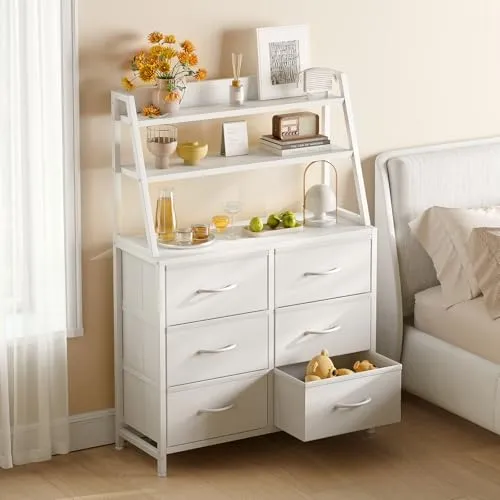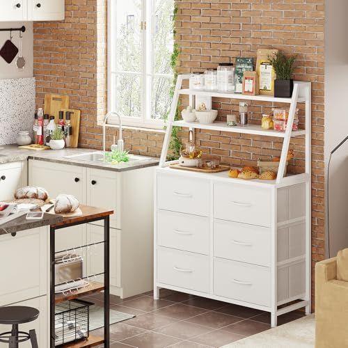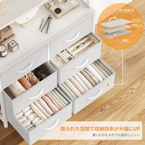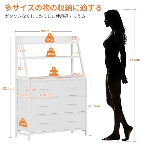 AODK 棚 収納 ラック付きチェスト タンス 大容量 幅80×奥行き30cm たんす 洋服タンス リビング収納 布製引き出し 衣装ケース 転倒防止 安定感 おしゃれ 6段6杯 ホワイトt