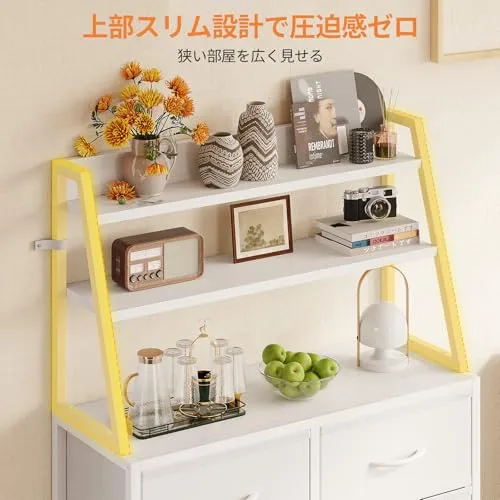 【大容量の段階式収納】オープン棚3段引き出し6杯の設計で、多サイズの物の収納に適する。MDFボードを内蔵した布製の引き出しは重い物を収納しても型崩れしにくい。上部の「見せる収納」はおしゃれなディスプレイ空間を作ることができ、下部の「隠し収納」は通気性に優れ、ほこりが落ちるのを防ぎ、プライバシーを保護することができる。見た目のおしゃれさと実用性を兼ね備えている。