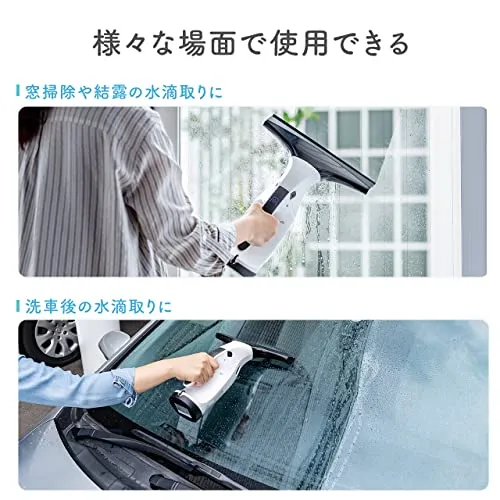 電動で水滴をぐんぐん吸い取るので、結露とりにも最適です。コードレス(充電式)なので、場所を選ばず使用することができます。