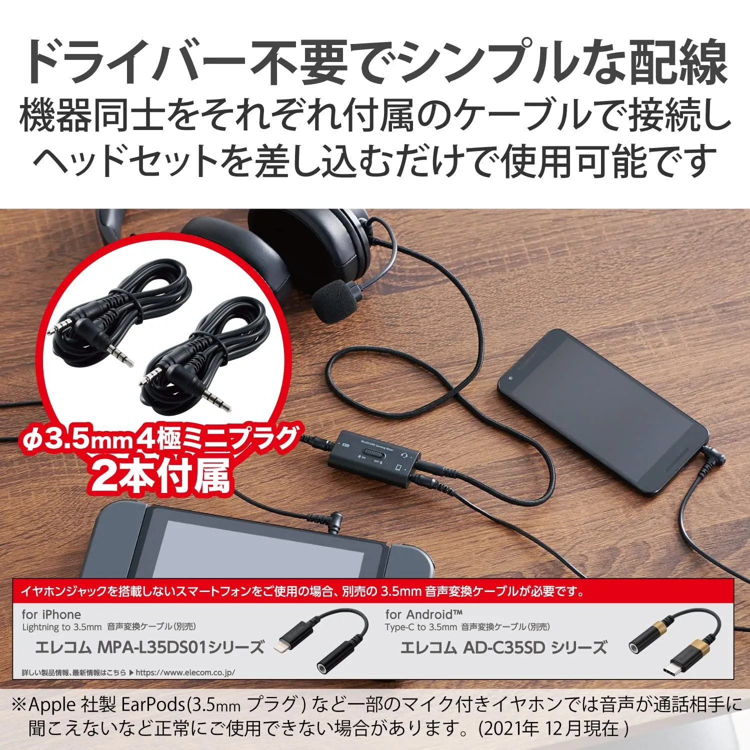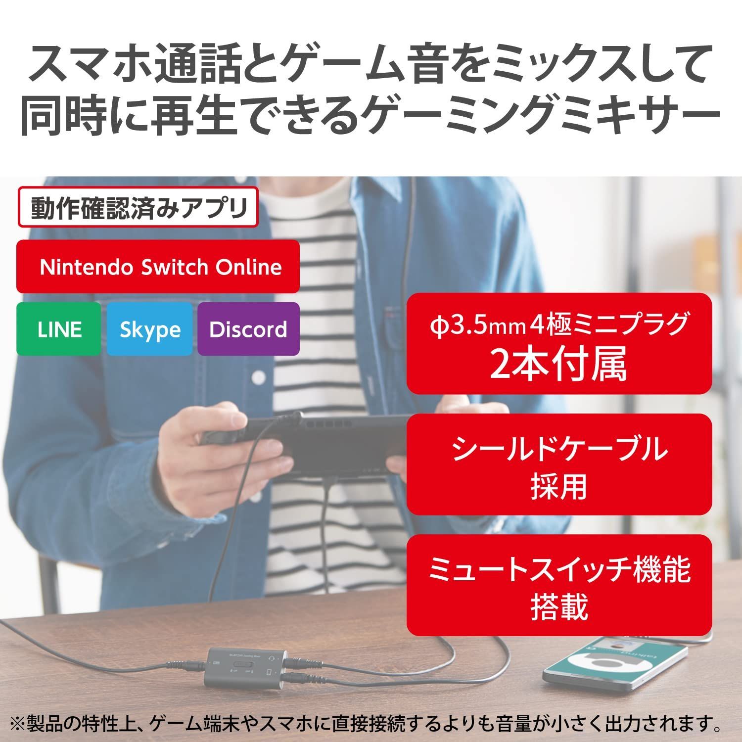 エレコム ゲーム用ボイスチャットミキサー 通話をしながらSwitchの充電が可能なアナログタイプ φ3.5mm ブラック HSAD-GMMA10BK