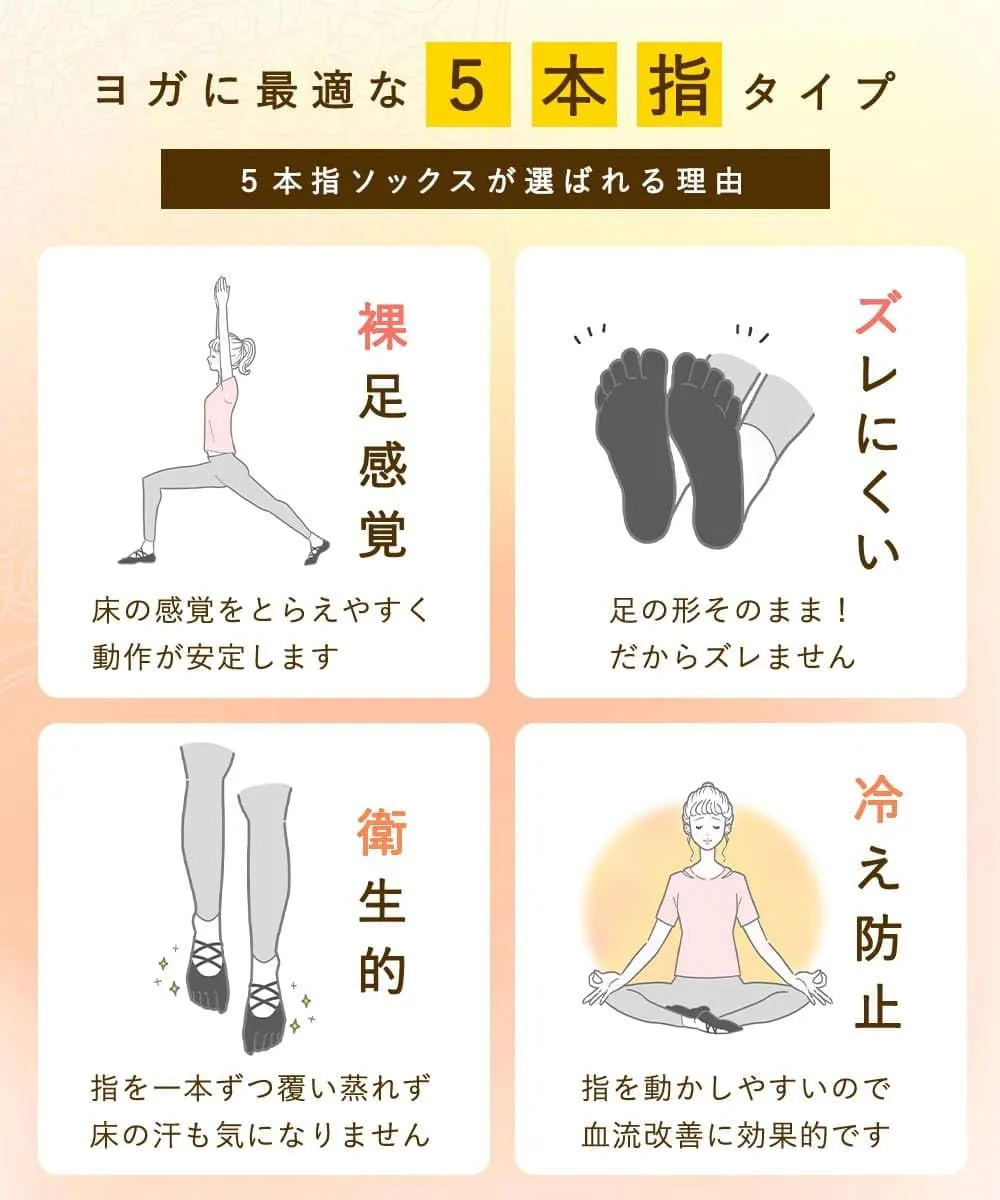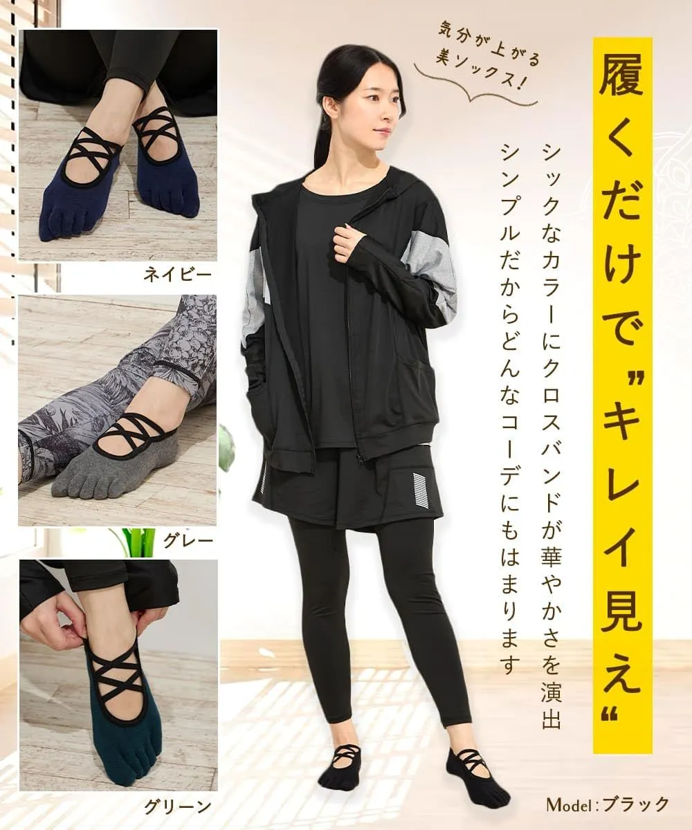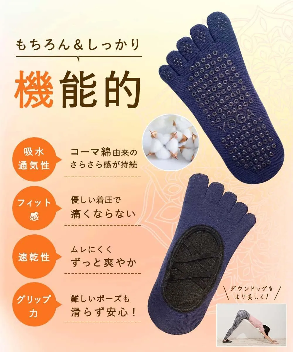 シンプルでウェアに合う 女性向けのヨガ用 滑り止め付き 五本指靴下です