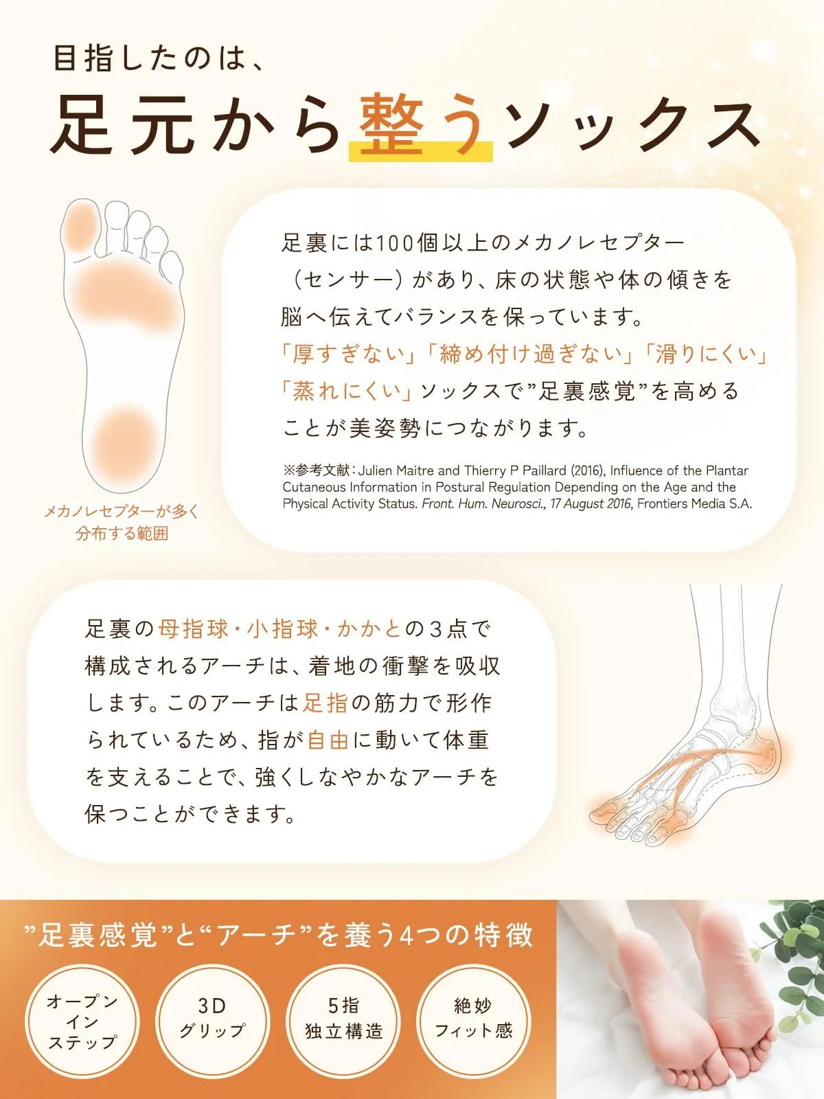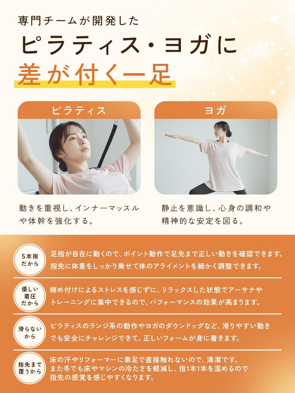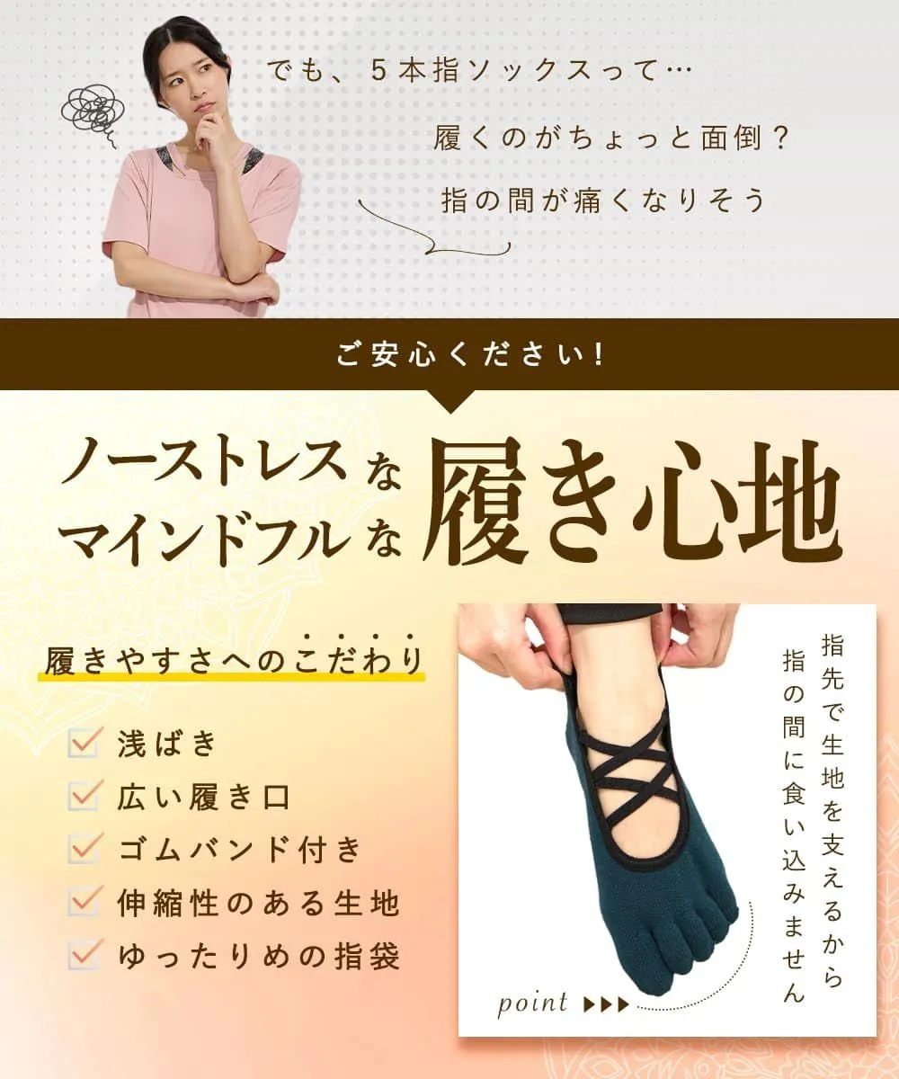 シンプルでウェアに合う 女性向けのヨガ用 滑り止め付き 五本指靴下です