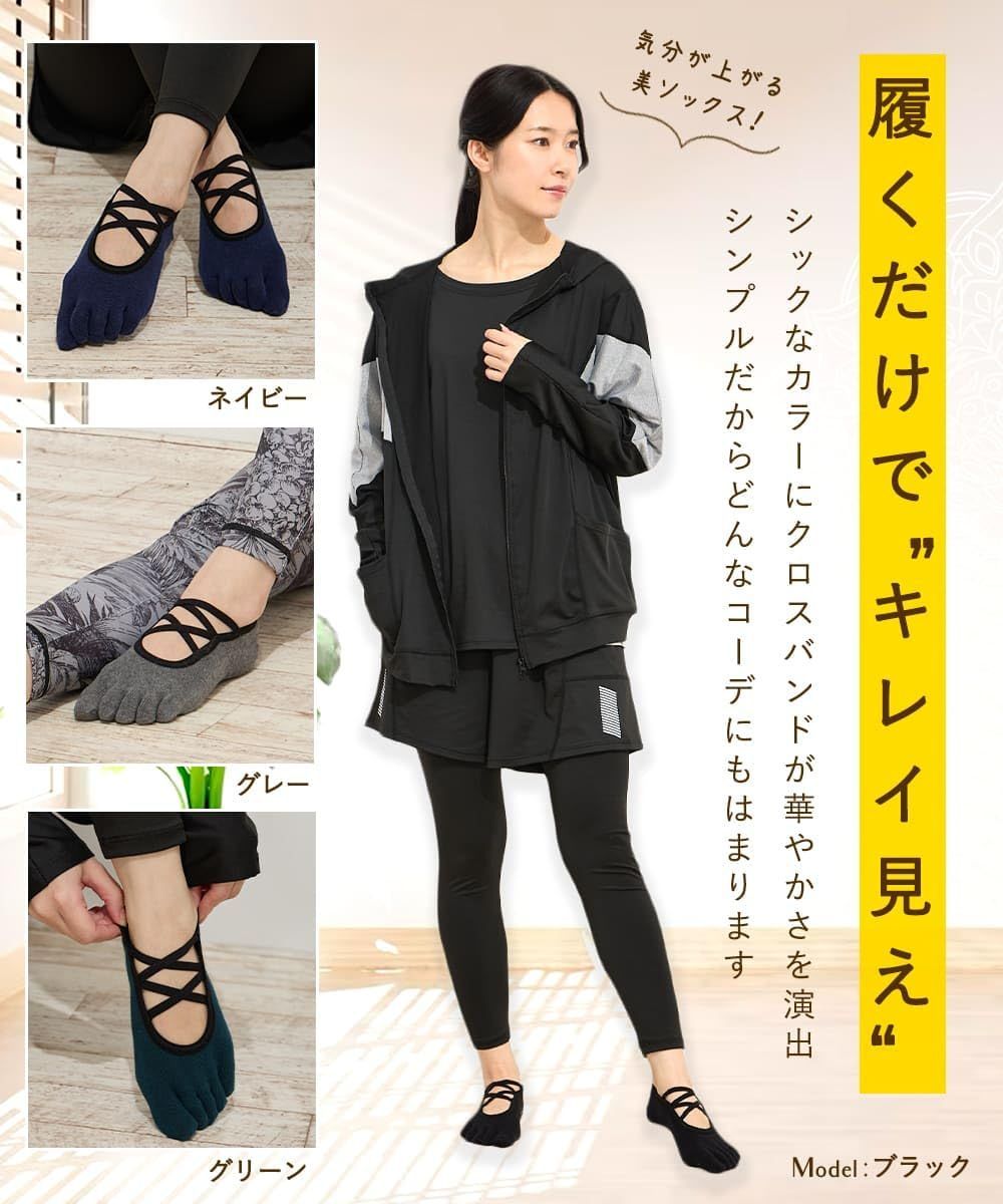 [FITnadi] ピラティス 靴下 ヨガ フィットネス 5本指 ソックス 滑り止め シンプル レディース