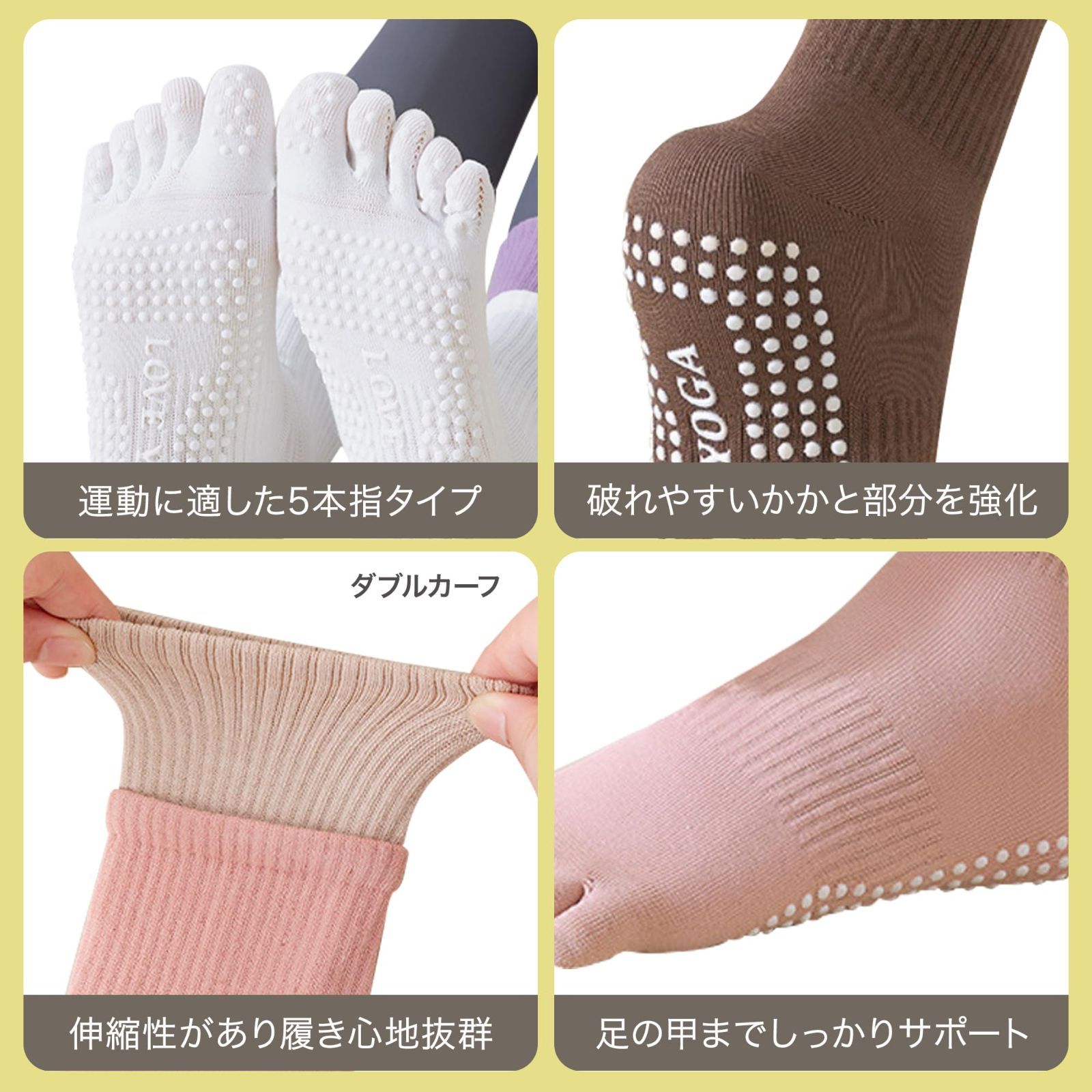 【インストラクター推薦】 ヨガソックス レディース 5本指 ソックスすべりどめ ピラティス フィットネス 靴下 ダブルカーフ 重ね履き風 靴下 おしゃれ