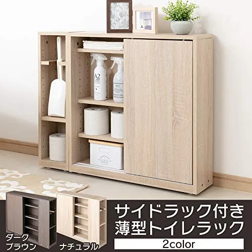 アイリスプラザ トイレラック スリム 収納 洗面所収納 ナチュラル 幅約60×奥行約17×高さ約63? サイドラック付き キャスター付きt