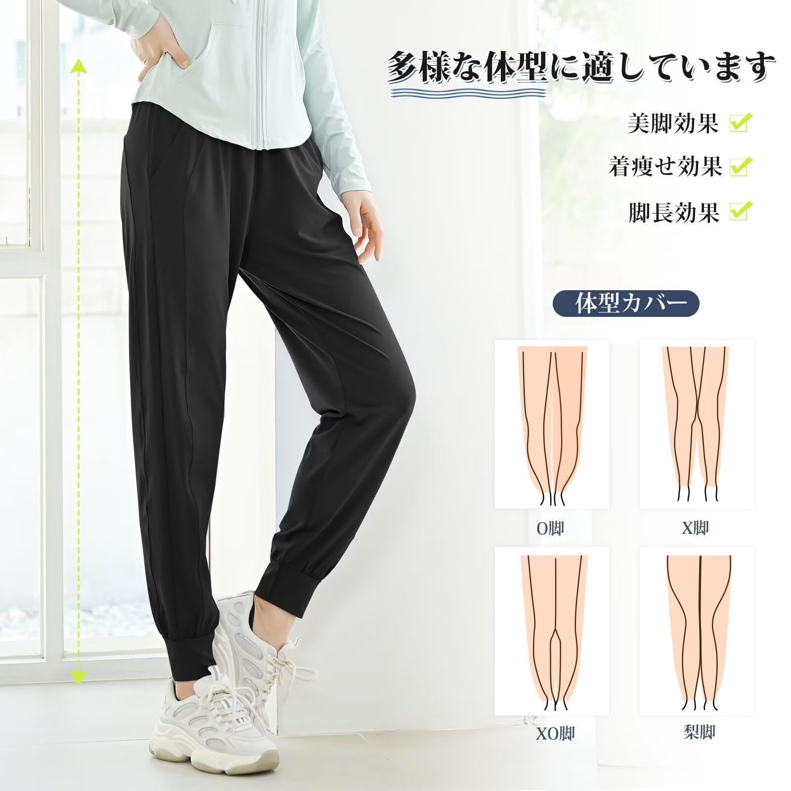 【美脚・体型カバー】ゆったりしたデザインで垂れ感がよく、気になる脚型がカバーできます。どんな脚型でも美脚になる可能があります。まっすぐな縦のラインが強調され、いつまでもスッキリで美脚が見えます。