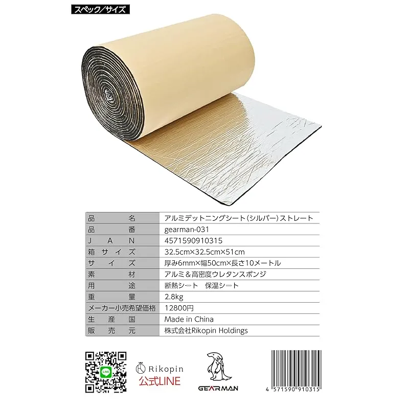 【商品詳細】 ブランド:GEARMAN 商品種別:車用断熱材 商品名:GEARMAN(ギアーマン)デッドニング 断熱材 断熱シート 車 デットニング材 アルミ 高密度ウレタンスポンジ 長さ10m×幅50cm×厚さ6mm 断熱マット 保温シート 車用断熱マット 製造元:株式会社Rikopinholdings 商品番号:geraman-031 色:シルバー