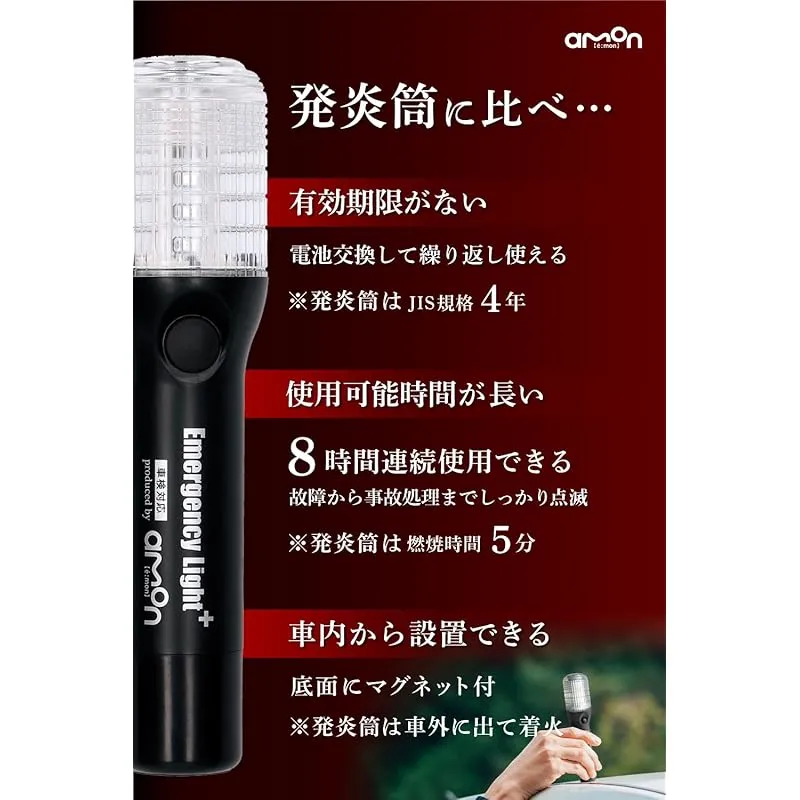 ◆緊急停車時の二次的事故防止に。発炎筒の代わりに車載できる車検対応品。